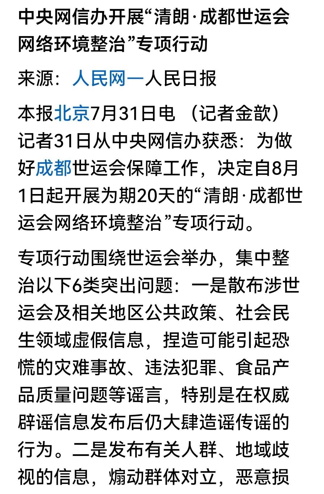 利剑出鞘!中央网信办护航成都世运会。因为这不是成都的市运会,而是世界的运动会,所