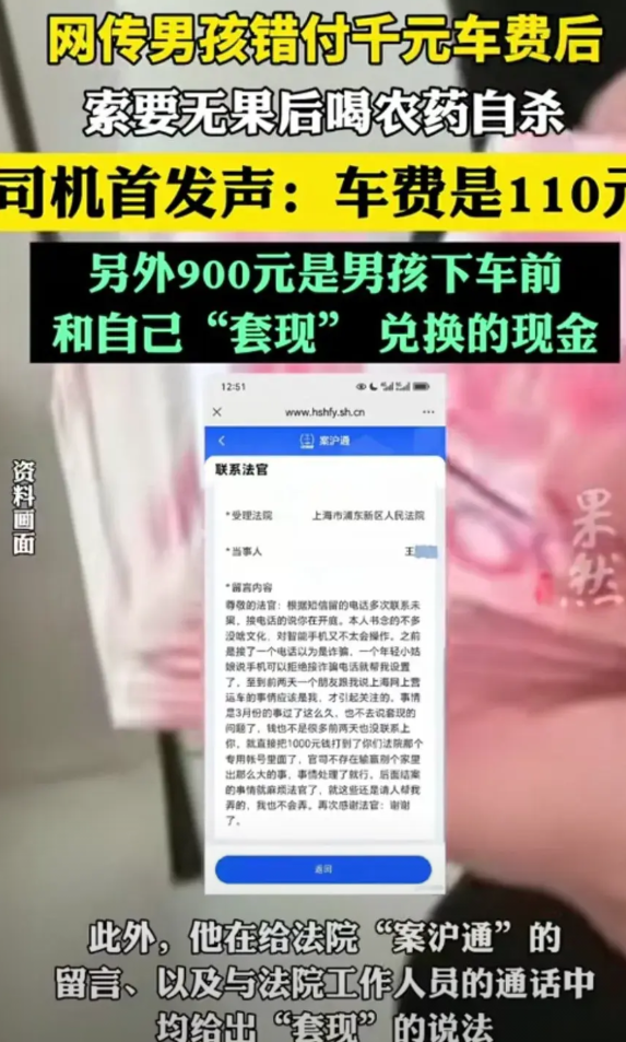 出租车司机回应:19岁男子在上海坐出租车,多转900元车费给出租车司机,多次讨要无果后自杀的事,“并不是多转900元车费,车费是110元,而他又跟我兑换了900元现金,我并未收到男子的留言,我凭什么给他们道歉,这辈子我都不会道歉。”