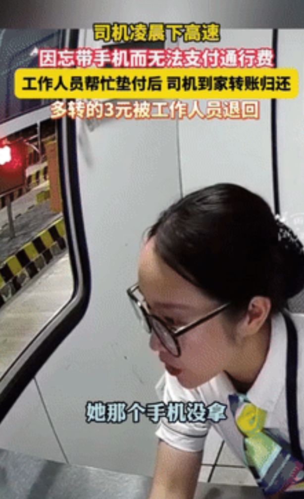 “都是实在人!”浙江杭州,一司机凌晨下高速时,因忘带手机没法支付通行费用,收费员报告给班长后,班长提出帮她先垫付,司机感激不已,并要对方留个联系方式,等她回家就转账,没想到,事后司机和班长的做法太暖心了! "该是多少就多少,我做善事又不是为了挣钱!"班长激动的说道,这句朴实无华的话语,道出了发生在浙江杭州高速收费站的一段暖心故事,2025年8月2日凌晨,当大多数人还在梦乡时,这个高速收费站上演了一幕令人动容的人间温情。 事情要从那个凌晨说起,一位司机驾驶着货车缓缓驶入收费站,准备支付通行费时,她突然意识到自己忘带了手机,身上也没有现金,面对着需要支付的通行费,她顿时陷入了困境,夜深人静的高速公路上,前不着村后不着店,女司机焦急万分,脸上写满了无助。 当班收费员发现情况后,立即向值班班长报告了这一特殊情况,班长了解情况后,没有丝毫犹豫,当即决定:"先帮她垫付吧,这么晚了让她怎么办?"这个决定看似简单,却体现了一位普通工作者的担当与善良,班长从自己的钱包里拿出钱替司机支付了全部通行费。 司机感动得热泪盈眶,连声道谢,她执意要留下班长的联系方式,承诺回家后第一时间转账归还,班长起初并不愿意,但在女司机的坚持下,还是留下了联系方式,谁能想到,这个小小的善举,后续发展更加令人暖心。 仅仅20分钟后这位女司机竟然又返回了收费站,她不仅全额归还了班长垫付的钱,还额外多给了一些钱表示感谢,班长看到这一幕,连忙摆手拒绝:"不用不用,该是多少就多少,我做善事又不是为了挣钱!"这番话让在场的所有人都为之动容。 这件事很快在网络上传播开来,引发了广泛讨论,有网友感慨道:"浙江真是一个温暖的城市,看的我都想去浙江了,"另一位网友则表示:"我们这边的收费站一辈子都学不会的,只会按章办事。" "该是多少就多少,我做善事又不是为了挣钱!"这句话之所以打动人心,正是因为它道出了善行的本质——不求回报,只为心安,在这个物欲横流的时代,这种纯粹的善意显得尤为珍贵,也更有力量去感染和带动更多人。 对此你怎么看?欢迎大家在评论区留言讨论。