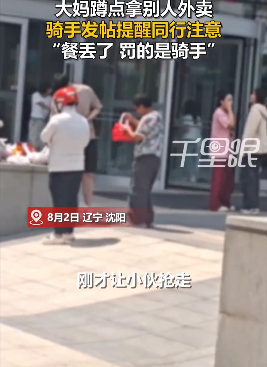 “到这吃自助来了?”辽宁沈阳,一骑手在写字间楼下送餐时,看到一位大妈鬼鬼祟祟,行为相当刻意,就多观察了一会,结果就和他怀疑的一样,大妈这是来蹲点偷外卖的 拍摄骑手称,自己是去存餐的,很快就注意到旁边有个大妈,穿得挺普通,却东张西望,动作还挺快,一副不太自然的样子,没过多久,大妈果然伸手从外卖架上拎走了一份外卖,转身就想走 巧的是,这时正好有位顾客下来取餐。顾客一眼认出大妈手里的包装袋,当即拦住她核对订单信息。果然,那份外卖正是这位顾客的。大妈见事情败露,只好悻悻地把外卖还了回去 大妈虽然没得逞,但她并没有走,又返回去挑了份偷走了,骑手这时才知道大妈是来偷外卖的,自己拍下来发在骑手群里提醒同行注意,餐丢了基本都是骑手赔钱 大妈为啥偷外卖,没人知道她的真实动机。可能是图个省钱,可能只是觉得顺手方便,也可能只是误以为不要的餐没人要。但不管出于什么原因,这种行为已经影响到了别人的正常生活,更直接影响到骑手的收入 现在外卖价格都不便宜,一份随随便便就得三四十。大妈这一手,等于直接把别人的午饭钱给"省"了。更糟心的是,骑手们风里来雨里去赚的都是辛苦钱,平白无故还要为这种事买单 对于消费者来说,点外卖时最好选择"当面交付"或者使用带密码的外卖柜。骑手们送餐时也要多留个心眼,遇到可疑人员及时提醒顾客取餐