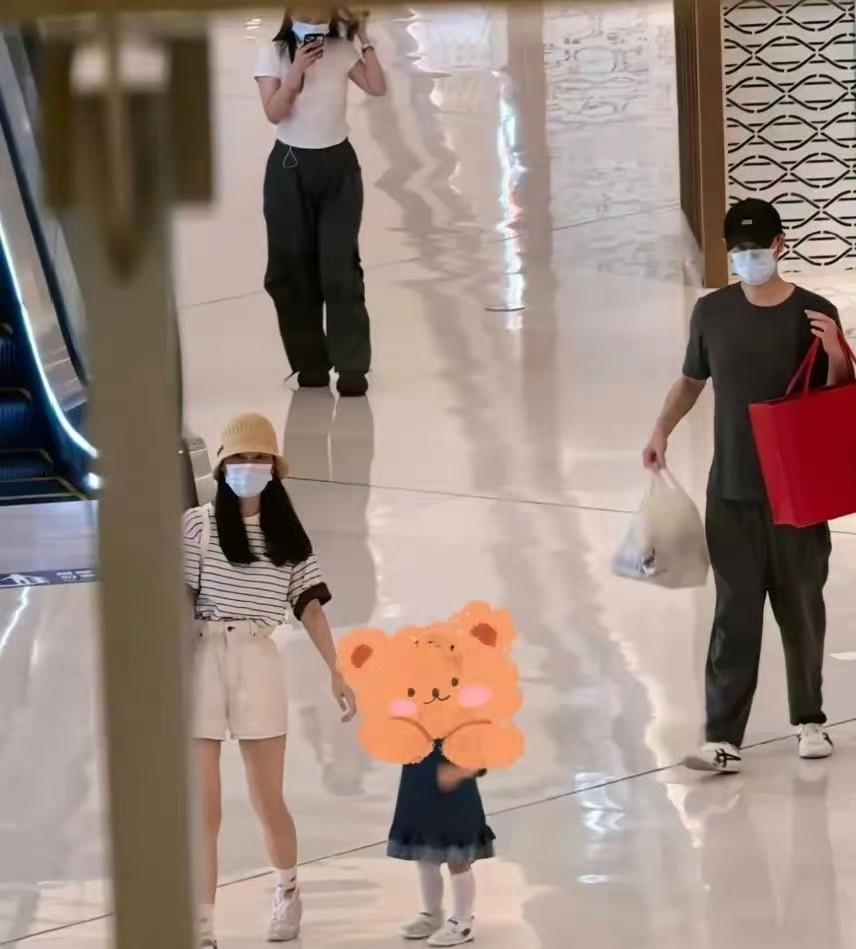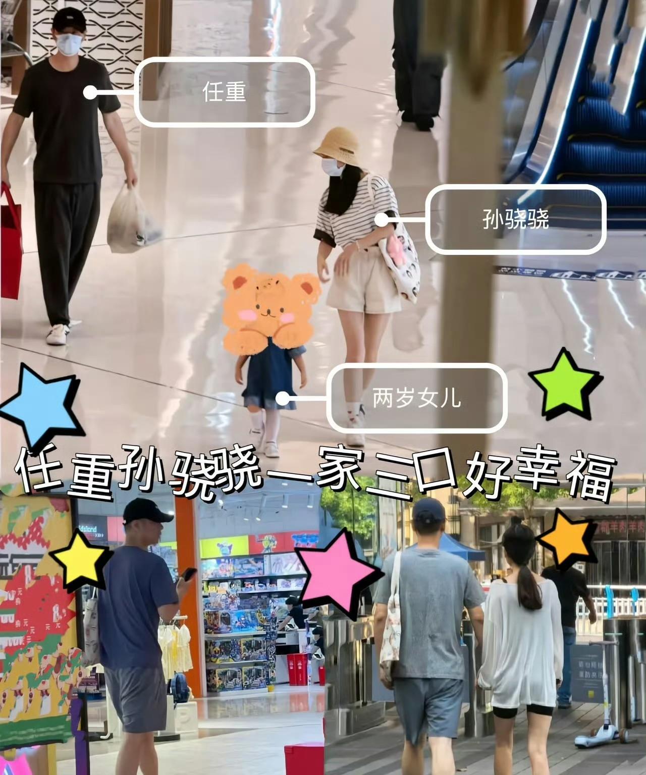 网友在商场撞见任重、孙骁骁带着娃逛街!小闺女都会满地跑啦!两口子戴着口罩,捂得挺