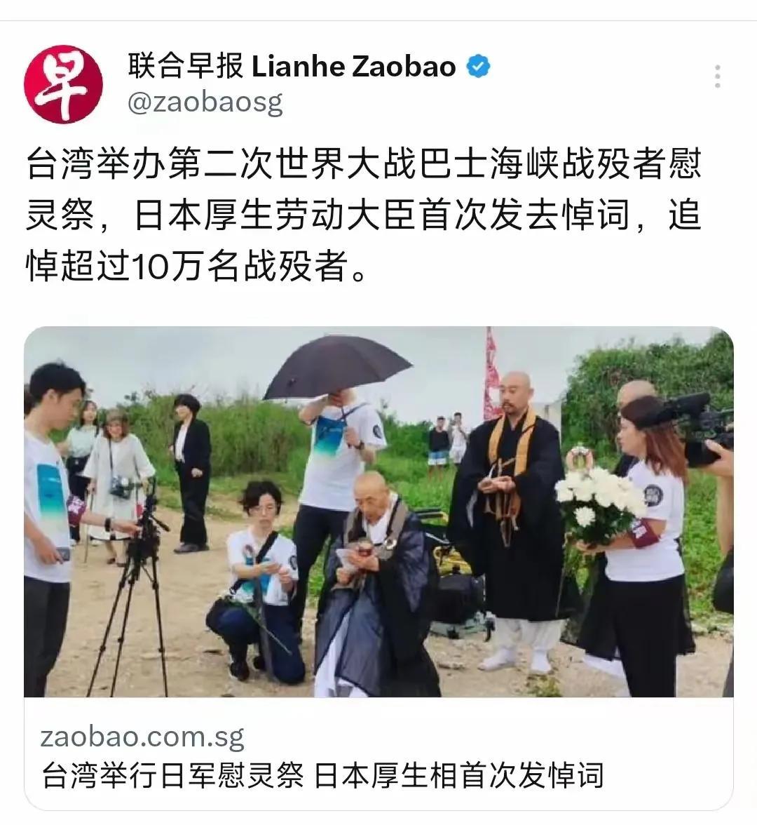 台湾民进党媚日心态昭然若揭,令人不齿,让祖宗蒙羞。 8月4日晚,台湾民进党公然在台湾举行“日军慰灵祭”,以纪念第二次世界大战期间,日本侵略台湾及整个巴士海峡地区,扔在那里的那10万具孤魂野鬼。 日本厚生相加藤胜信为此专门首次发去了悼词。 今年是中国人民抗日战争胜利80周年,全世界都在举行庆祝抗战胜利活动。 中国作为当年抗日战争主战区,以及受日本鬼子侵略最严重的国家,当年牺牲了多达3500万中国平民,光军人就牺牲了425万。这其中就包括台湾那边的国民党官兵和平民。 今天,台湾民进党数典忘祖。不去大张旗鼓的纪念被日本军人杀害的祖先,而是去纪念杀害祖先的凶手。其丑恶嘴脸已无颜面对祖灵。
