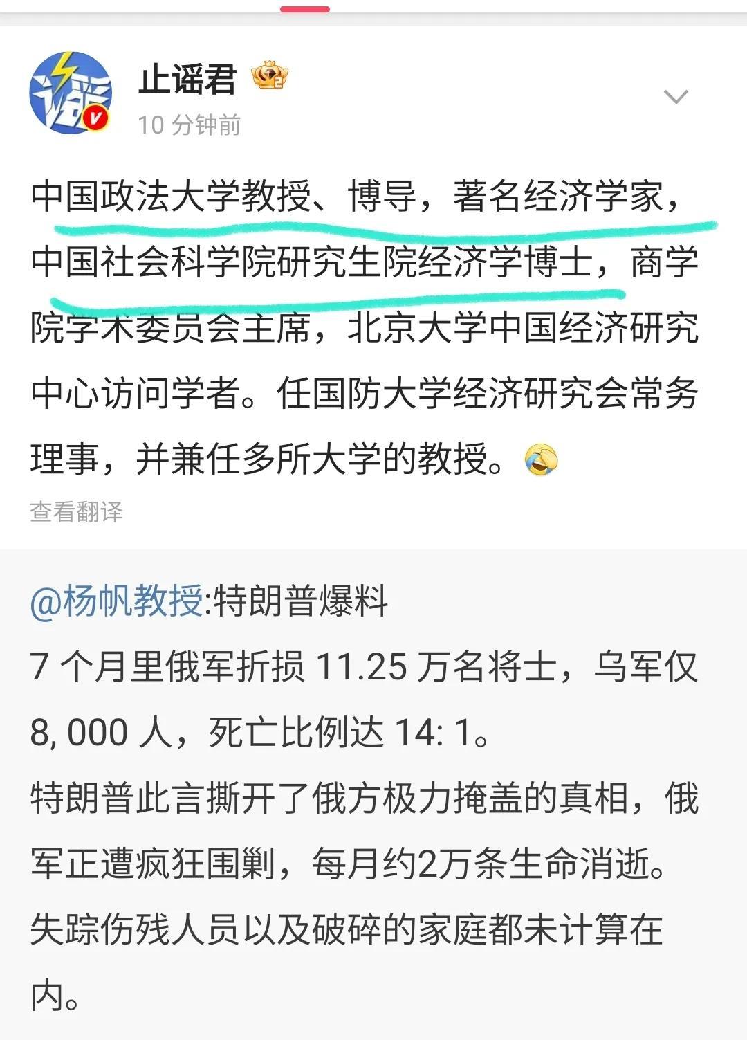 一个中国政法大学的教授,居然能说出这样的话来,着实是让人堪忧啊。 这位杨帆教授的教学水平怎么样,我没在那上过学,不知道。 但是他辨别是非的能力,真的不如一些普通网友。 你看评论区里,很多不是教授,没在政法大学进修过的朋友。 都还能比较冷静客观的在那分析局势,最起码用脑子在思考了。 而这位中国政法大学的杨帆教授,就跟个复读机。 别人说什么他信什么,我估计特朗普说,外国的月亮比中国的圆,他都信。