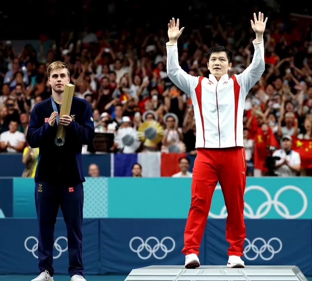小莫和小胖一起吃饭了! 去年的今天,是巴黎奥运会乒乓球男单决赛樊振东战