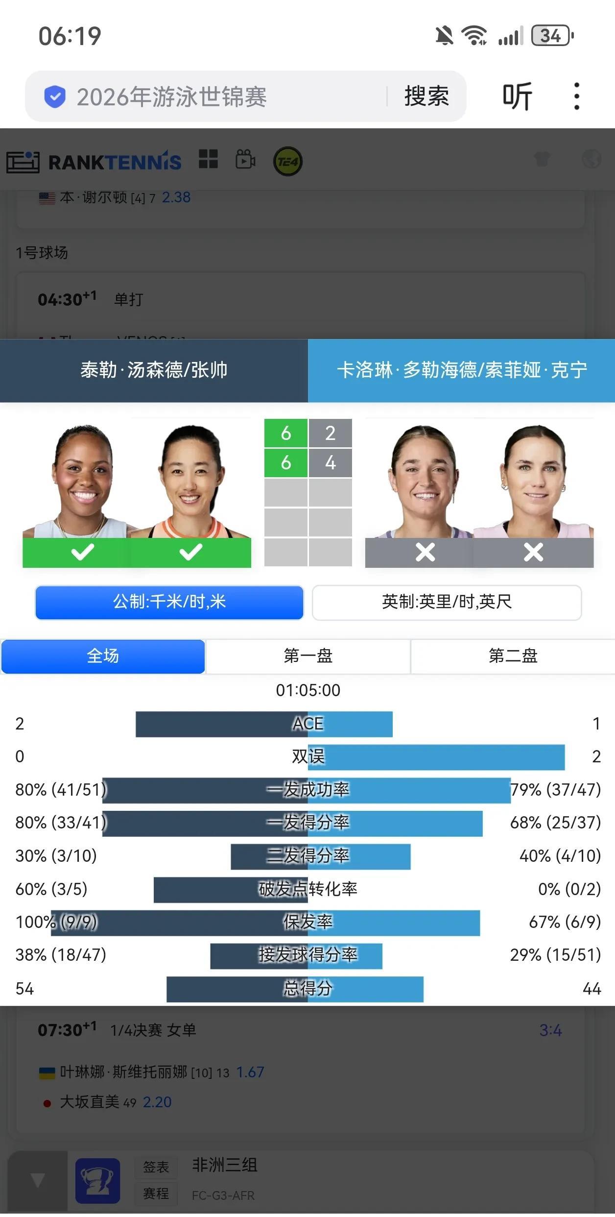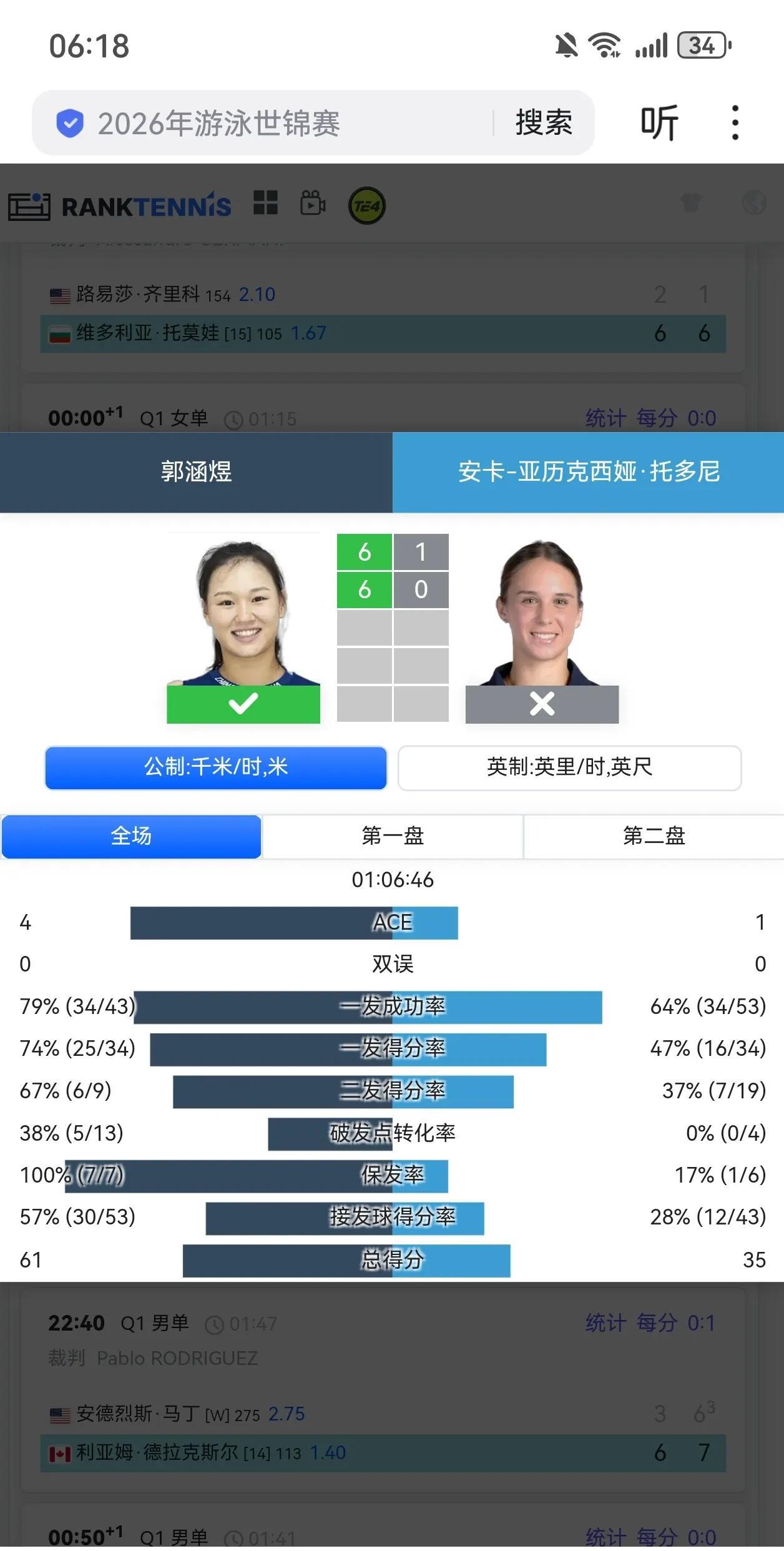 WTA1000辛辛那提资格赛 两人均横扫过首轮。 W100兰蒂斯维尔首轮 CH7