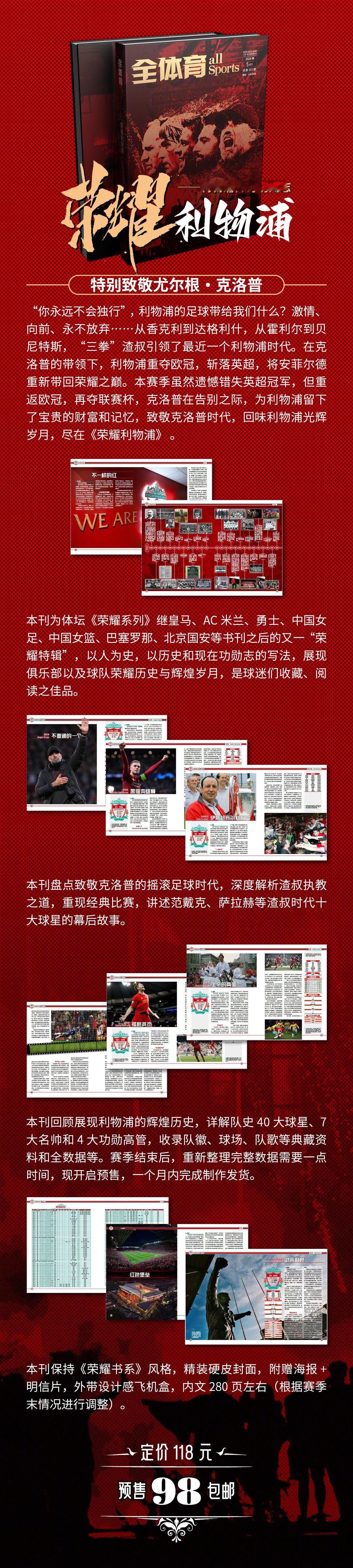 本刊回顾展现利物浦的辉煌历史,详解队史40大球星、7大名帅和4大功勋高管,收录队徽、球场、队歌等典藏资料和全数据等。赛季结束后,重新整理完整数据需要一点时间,现开启预售,一个月内完成制作发货。