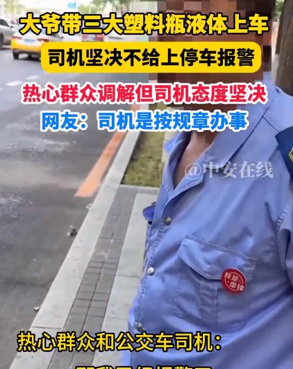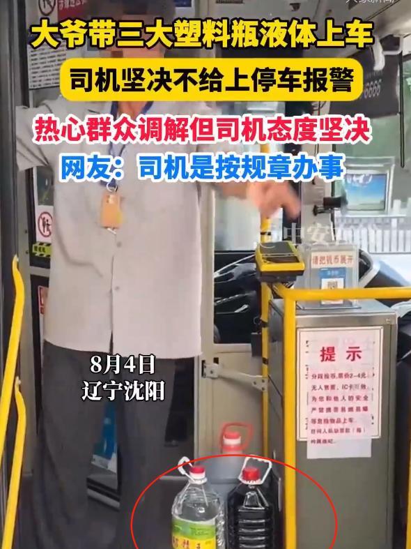 “解释不清了!”8月4日辽宁沈阳,大爷带着3瓶“不明液体”坐公交,司机坚决不让上,热心群众现场调解,司机却不理会,坚持等警察过来处理,说不确定里面到底是什么,半小时后警察到后确认液体为安全,老人最终被允许乘车。 "不行,你这三瓶子不明液体绝对不能上车!"8月4日这天,辽宁沈阳和平区的一处公交车站旁,326路公交车司机李师傅的一声厉喝,让原本有序候车的人群瞬间围拢过来。 只见一位头发花白的大爷正站在车门边,手里提着三个鼓鼓囊囊的塑料瓶,其中一个瓶身上"醋精王"的标签格外醒目,另外两个瓶子里则装着深色液体,在阳光下泛着不明所以的光泽。 而李师傅紧紧盯着那三个瓶子,手指不自觉地敲打着方向盘,眼神里满是警惕,他在这条线路上开了多年车,公司反复强调过不能让乘客携带不明液体上车,尤其是最近安全检查严格,他更是不敢有丝毫马虎。 大爷见状,着急地往前凑了凑操着一口东北口音表示道:"大兄弟,这都是家里用的东西,没啥危险的。" 可李师傅不为所动,坚持表示:"大叔,不是我不让你上,你这瓶子里装的是啥谁也不知道,万一出点啥事,我担待不起啊。" 周围的热心群众也纷纷围上来,想要帮忙调解,有人表示:"大爷这么大年纪了,能带着啥危险东西啊,通融通融吧。"还有人凑近瓶子仔细看了看表示:"这瓶上不写着醋精王吗,应该是家里做饭用的调料吧。" 可李师傅依旧板着脸表示:"就算是醋精,另外两瓶是啥也不清楚啊,我必须按规矩来,不然出了事怎么办?" 看着司机坚决的态度,大爷急得直跺脚,为了证明自己带的东西没问题,他一咬牙,打开了标有"醋精王"的瓶子。 顿时,一股刺鼻的气味弥漫开来,周围的人纷纷往后退了退,"闻闻,这就是醋精,家里做菜用的,没啥危险。"大爷举着瓶子表示道。 旁边有眼尖的群众发现,这瓶醋精的标签上印着当地一家醋精生产厂家的名字,看起来确实像是普通的生活用品。 然而即便如此,李师傅还是没有动摇,他拿起手机说要报警处理。大爷一听要报警更着急了,嘴里不停地嘟囔着:"这咋还报警了呢,我就是带点家里用的东西坐车啊。" 周围的群众也觉得司机有点太较真了,纷纷替大爷说话,可李师傅只是静静地站在那里,等待警察的到来。 半小时后警察赶到了现场。他们仔细检查了大爷携带的三瓶液体,确认其中一瓶是醋精另外两瓶是家里自制的酱料,确实没有任何危险。 这时李师傅才终于松了一口气,笑着对大爷表示:"大叔,现在能确定没问题了,你上车吧。"大爷也不再生气,笑着表示:"大兄弟,你这规矩守得对,刚才我着急,别往心里去啊。" 这件事在网上曝光后,立刻引发了网友们的热议,有人说:"司机太死板了,大爷都打开瓶子证明了,还不让上车,一点人情味儿都没有。" 但更多的人支持司机的做法,认为:"司机严格执行规则,是对全车乘客的安全负责,现在社会就需要这样坚守规则的人。" 而从这件事里我们能看到两种不同的智慧在碰撞,大爷用最朴素的方式,打开瓶盖自证清白,这是民间的智慧,充满了人情味儿;而司机坚守规则,不让任何不明液体上车这是对公共安全的底线坚守。 在生活中,我们需要人情的温度,它让我们的生活充满温暖和善意;但同时我们也需要规则的坚守,它是我们安全生活的保障。 试想一下如果司机当时没有坚守规则,万一那两瓶深色液体真的有危险,后果不堪设想,但如果大爷没有自证的举动,可能事情会变得更加复杂。 这两者看似矛盾,却又缺一不可,人情味儿让规则有了温度规则让人情味儿有了底线。 那么你怎么看待这件事呢?是支持大爷的自证智慧,还是认可司机的规则坚守? 信源:金羊网