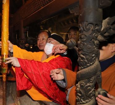 这是少林寺前方丈释永信在某年大年初一上第一炷香。少林寺的第一炷香分量很重。据说,很少人能驾驭得了。日常中,寺庙中供佛的第一炷香也可被称为头香,但大年初一的第一炷香又是头香中的头香。此香需要有身份与地位的人才能掌握。 少林寺在佛教界被称为禅宗祖庭,在众人中又被称为天下第一名刹。因此,少林寺大年初一的第一炷香更是与众不同。 这一年的大年初一,少林寺方丈释永信上头香。他戴着口罩,穿着华丽的袈裟,将第一炷香先插到香炉中。旁边的游客都瞪大眼睛看着这一幕。释永信本人也非常享受这一刻。因为,在这一刻,他不仅能彰显少林寺方丈的身份,还能赚得盆满钵满。释永信的权力欲与金钱欲令人不可思议。