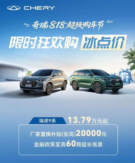 奇瑞818超级购车节!818限时冰点价来袭,冰点价4.99万元起开新车,是的,你没有听错,瑞虎3x卓越版自动挡,现金一口价4.99万元起, 参与这次活动的车型有瑞虎9,瑞虎8系,瑞虎7plus等车型,