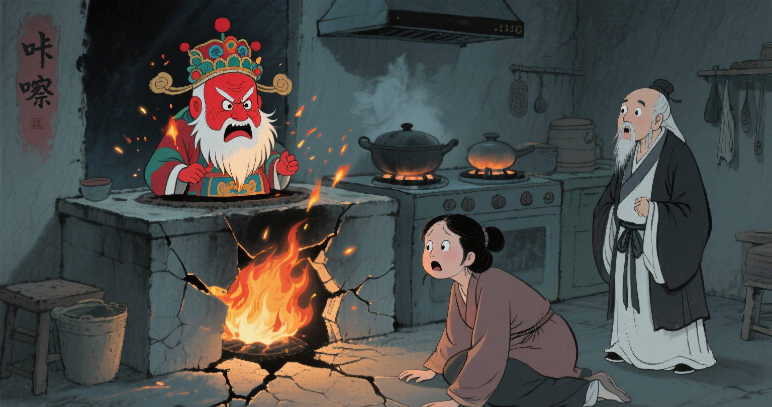 姜子牙写下休书那晚,灶台突然“轰隆”一声炸裂。 里面竟爬出个浑身冒火的小老头,指着马氏鼻子就骂…… 姜子牙年轻时穷得叮当响,在渭水边钓鱼糊口。 他媳妇马氏是个火爆脾气,见天儿扯着嗓子骂。 “钓钓钓!钓到猴年马月也钓不出个金龟婿!” 姜子牙也不恼,眯着眼笑:“急啥?鱼不上钩,是时机未到。” 这天马氏去河边洗衣服,瞧见隔壁张财主家的大鲤鱼肥得流油,眼珠子一转,趁人不备捞了两条塞进裤腰。 谁知刚到家,裤脚“哗啦”淌下一滩腥水,正巧浇在灶王爷神像上! 当夜三更,灶台突然“咔嚓”裂开,窜出个三尺高的红脸小老头,胡子还冒着火星子。 “马氏!你偷鱼污神,折寿三年!” 马氏吓得直翻白眼,姜子牙却抓起扫把就打:“哪来的精怪敢吓我婆娘?” 灶王爷气得跳脚:“好你个姜尚!你媳妇偷鸡摸狗,你还护短?” 说着甩出一本账簿,上面密密麻麻记着马氏这些年偷的葱、摸的蒜,连三年前顺走邻居的绣花针都写得明明白白! 马氏瘫在地上哭嚎,姜子牙却盯着账簿最后一页愣住了。 那上面竟写着三日后渭水暴涨,会有条龙王爷的亲戚来讨债! 果然第三天,张财主带着家丁打上门来,非说马氏偷了他家祖传的“龙鳞金鲤鱼”。 眼看要闹出人命,姜子牙突然把鱼竿往渭水里一抛:“不就是条鱼吗?我赔你条活的!” 说也奇怪,那鱼钩刚入水,整个河面突然金光大作,钓上来条会说话的黄金鲤鱼! 鲤鱼开口就骂:“张扒皮!你祖上偷挖龙脉才发的家,还敢讹人?” 原来这鱼是龙宫账房先生,专门来收张家欠的三十年水债。 张财主当场吓尿裤子,连滚带爬跑了。 后来渭水边多了块“醒世石”,上面刻着姜子牙的话。 “偷根针线损阴德,举头三尺有秤砣。” 据说马氏从此改过向善,可那夜被灶王爷烧焦的眉毛,再也长不出来了……(民间传说:姜子牙休妻夜,灶王爷显灵说了啥?马氏听完当场吓疯!)