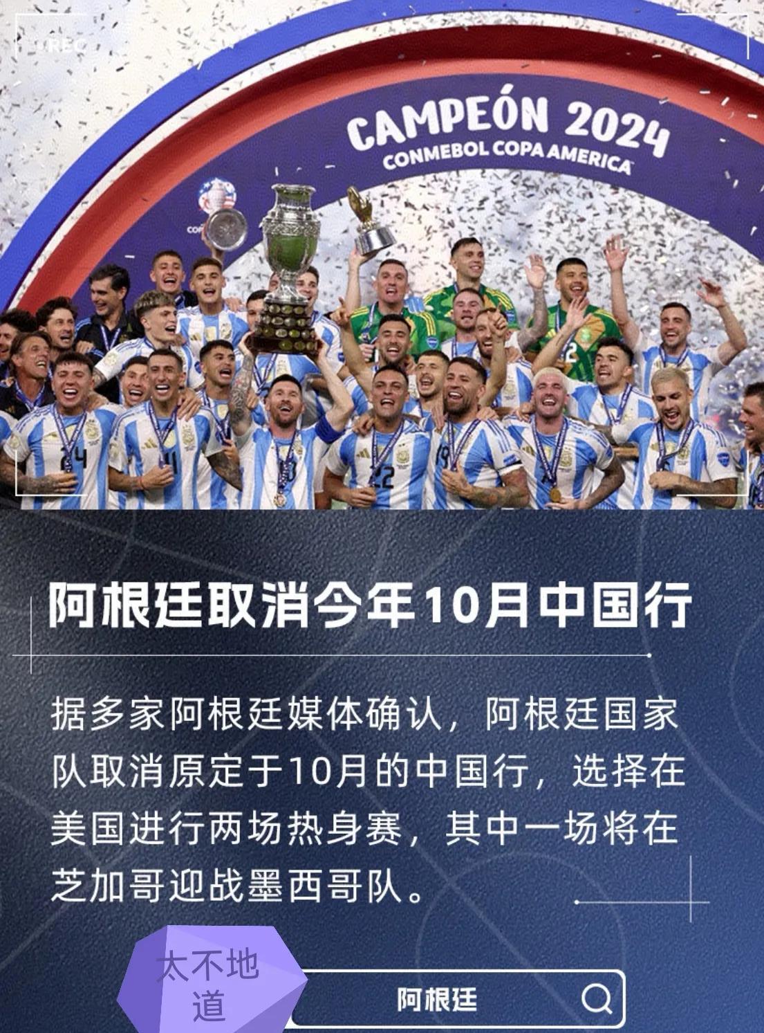 不地道!阿根廷国家队又又又不来中国了! 据阿根廷《号角报》等多家媒体确认,原本1