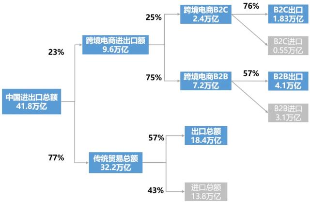 2023年,阿里国际站支持的B2B出口规模达到4000亿美元,线上成交也接近500亿美元一年。