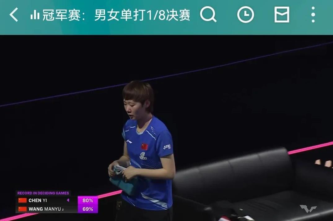 小将陈熠3:2王曼昱,赛后陈熠用刺激来形容她和王曼昱之间的这场较量,真的非常刺激,王曼昱在先下两局的情况下被陈熠逆转。 第一局11:9,第二局11:8王曼昱拿下大比分2:0领先,第三局陈熠7:1的开局,说明陈熠没有放弃,虽然8:1后陈熠也经历了王曼昱的连续追分,第三局10:6来到陈熠局点,陈熠的发球轮10:8曼昱连拿两分,暂停回来后曼昱将比分追平10:10,陈熠没有慌以12:10拿下了第三局,将大比分追至1:2。 第四局10:7是陈熠的一个防转攻得分,虽然曼昱连下两分后,陈熠终于兑现了第四局的局点以11:9拿下第四局,大比分来到2:2。 第五局开局陈熠的发球轮拿下两分,王曼昱请求暂停,暂停回来王曼昱连续拿下五分5:2曼昱领先,双方交换场地,交换场地后陈熠连续拿下三分,将比分追求5:5,5:5后曼昱又连续拿下三分,比分来到8:5王曼昱再次领先,陈熠追分至7:10来到了曼昱的赛点,陈熠再次将比分追平10:10,决胜局的局末陈熠发球再得一分,陈熠的赛点曼昱发球,陈熠以12:10拿下决胜局,恭喜小将陈熠在大比分0:2落后的情况下逆转拿下比赛。 如果说美国大满贯陈熠可以战胜孙颖莎是球台的因素,那么横滨陈熠再次战胜王曼昱,说明现在的陈熠赢了不是偶然,是真的有了女队主力的实力,我们乐于看到国乒团队不断有小将冒出来,这才是国乒队该有的样子。 #晒图笔记大赛#