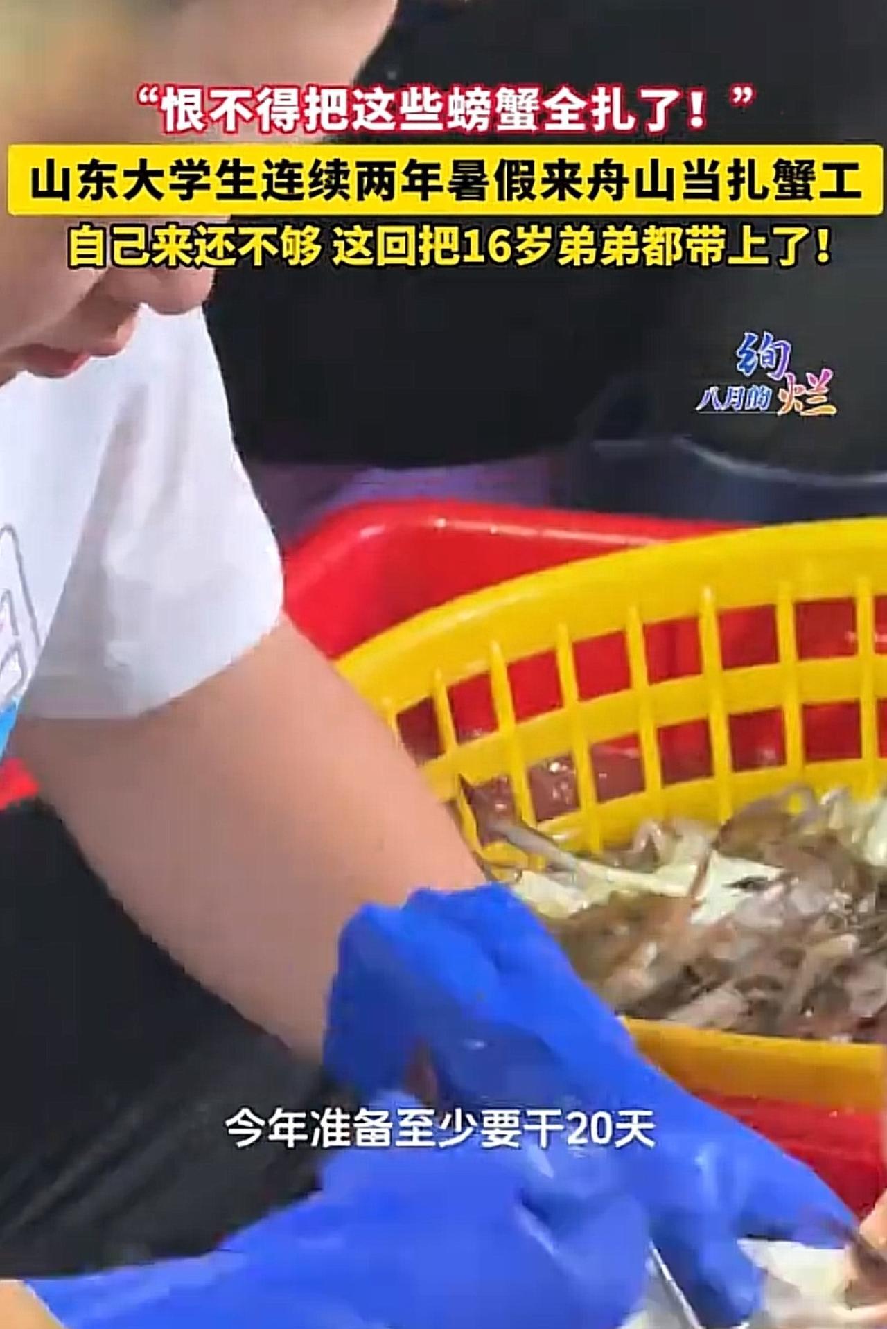 #山东大学生连续两年暑假当扎蟹工#真优秀!山东大学生连续两年暑假赴舟山当扎蟹工,