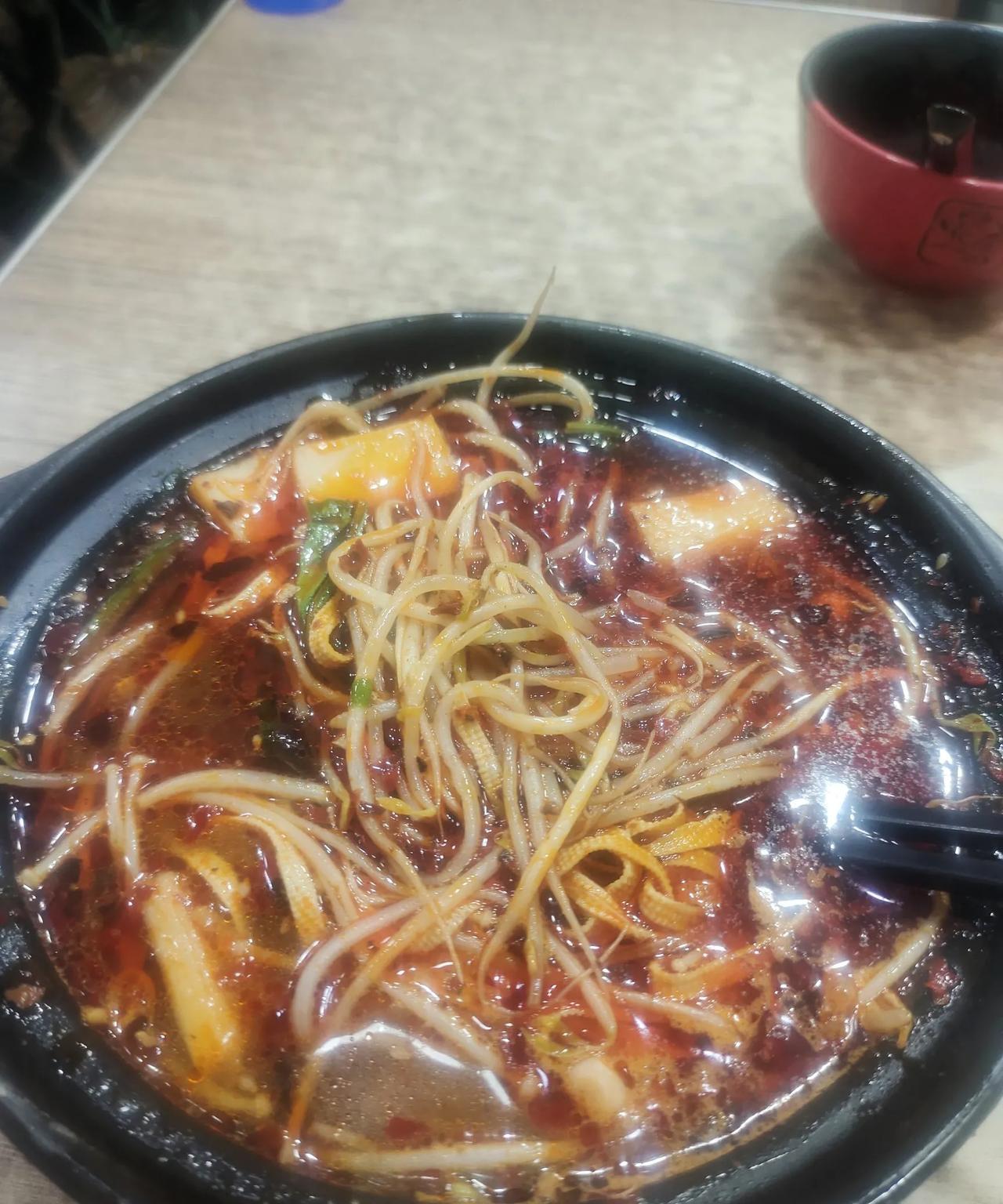 今天你的午饭吃的什么啊? 前几天在外面一家“云南过桥米线”店里吃到了一种微辣的砂锅土豆粉,感觉味道挺好的。 今天我就尝试自己把它做出来。这家店里的砂锅土豆粉主要食材就是土豆粉,绿豆芽,油麦菜段,虾片,豆腐皮,鹌鹑蛋等这几样东西。 我在家里用一块火锅底料做汤底。除了鹌鹑蛋和白色的虾片我没有买到,其他的食材我都买好了。我还提前煮了一个鸡蛋,剥去它的外壳用它来代替鹌鹑蛋。 做好后儿子说挺好吃的。我做的汤里辣椒没有外面店里的多,我专门又放了一点油泼辣子。除了没有白色的虾片外,我感觉味道还不错。 根据自己的喜好,我又放了海带和金针菇。如果下次再加上两根小麻花,那就更好吃了。 如果不知道吃什么,就做砂锅土豆粉吧!它做起来实际一点不难! #过桥米线# #去吃过桥米线# #一碗香米线# #米线汤# #米线砂锅面#