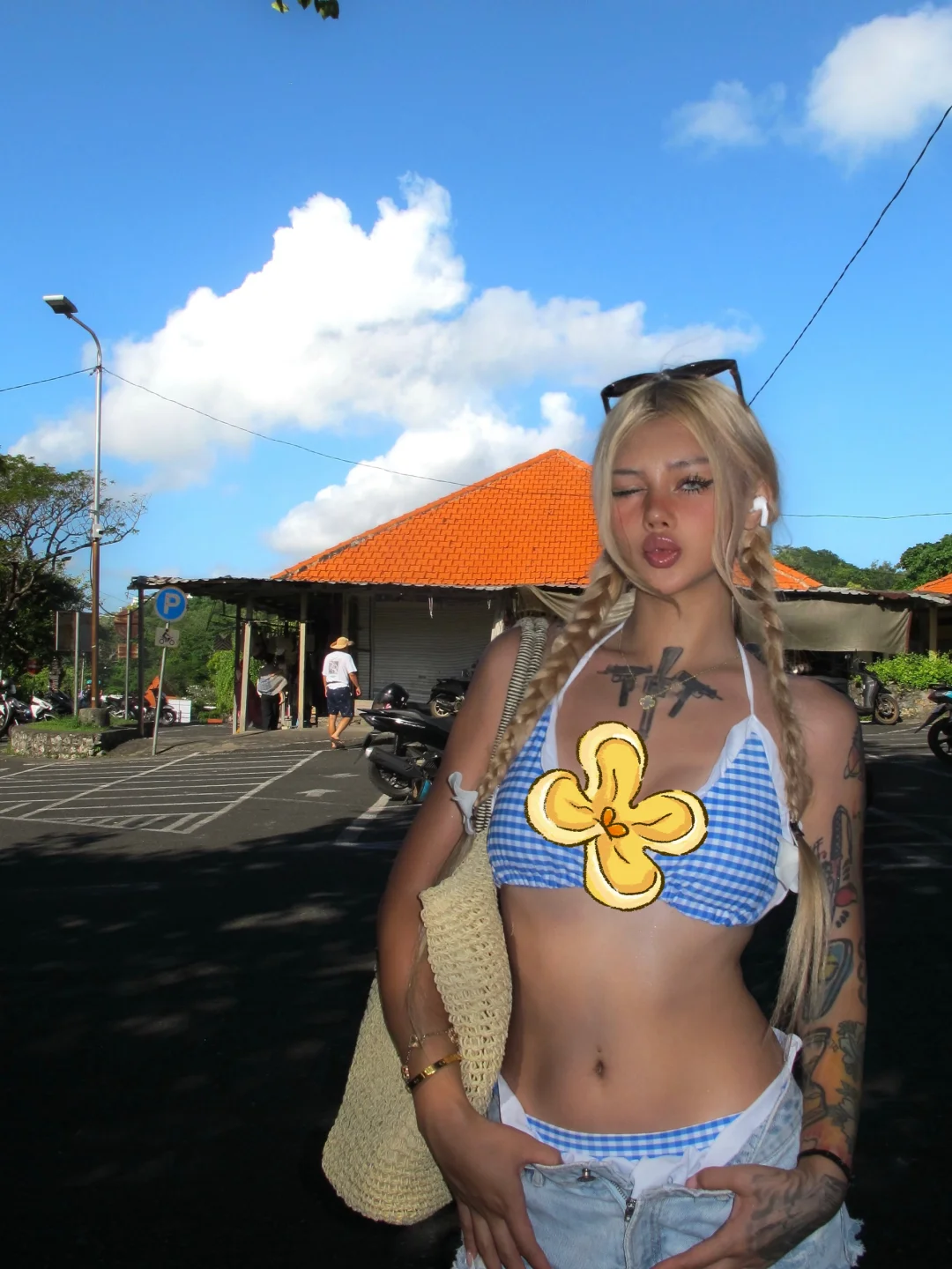 克拉拉的海边造型,身材曲线太绝了克拉拉的海边美照太吸睛了!一袭彩色印花连体