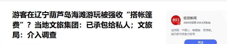 “胆子真大!”辽宁,女子去海滩玩,刚搭好帐篷,就走过来一男子,张口就要收50元。女子很疑惑,但是也没多说什么?付款时问了一句“有发票吗”?没想到,男子突然暴跳如雷,说海滩是他承包的,一万多游客就你要发票,是不是有毛病?女子也毫不退让,坚持要发票! 8月8日,辽宁一女子在网上发帖子吐槽,自己去海滩玩时遇到的糟心事被人强收“搭帐篷费”,更气人的是,付了钱要求开发票,对方不仅拿不出来,还态度蛮横地赶她走...... 事情还等从前一天说起。女子在8月7日这天去了葫芦岛的邴家湾海滩。她想着,这地方平时来玩的人挺多,自己带帐篷、自己动手搭,应该没啥额外费用,况且沙滩本来就是大家都能去的地方。 抱着这样的想法,女子带着帐篷开车出门。到了地方,她就和同伴一起动手,把帐篷搭了起来,正准备好好玩一会儿,没想到麻烦来了! 一个男子大摇大摆地走了过来,直接掏出收款码,让女子付钱。女子一头雾水,问为啥要付钱。男子说,这片沙滩是他们承包的,来这儿玩就得交钱。这让女子特别不理解,她以前去别的沙滩玩,从没听说过这种规矩,而且帐篷是自己的,也是自己搭的,凭啥要给这笔钱? 可当时对方那边人可能不少,女子一个人也说不过他们,想着出来玩就是图个开心,别因为这点事扫了兴,只好不情不愿地付了钱。不过付完钱,女子还是多问了一句:“能开发票吗?” 就这一句话,彻底点燃了那个男子的火气!他立马就炸了,说开不了发票,还嚷嚷着:“这么多游客来玩,就你要发票,是不是有毛病?” 女子觉得他们收费本来就不合理,现在还这态度,也来了脾气,坚持要发票。双方就这么争执起来,最后对方不耐烦了,直接放话:“你觉得不合理,就别在这儿玩!” 女子越想越气,觉得这事太离谱了,当场就把和对方的对话录了下来,发到了网上,想让大家都看看,这些人收费没收据、开不了发票,还这么有理有据的样子。 帖子一发出来,很快就引起了网友们的热议。不少网友都觉得这事不对劲,有人说公共资源凭啥承包给个人收费啊?沙滩属于公共资源,按理说应该是供大家免费使用的,就算要管理,也得是相关部门规范管理,哪能随便承包出去,让个人来收费呢? 还有人说要是我遇到这种情况,就不给他们钱,凭什么啊?也有网友分享了自己类似的经历,说去有些地方游玩,也遇到过这种莫名其妙的收费,要么是收停车费,要么是收场地费,而且大多都不给发票,感觉就是有些人想趁机捞一笔。大家纷纷觉得,这种行为太不合理了,既损害了游客的利益,也影响了当地的旅游形象。 现在,这件事还在核实当中,到底这片沙滩是不是真的被合法承包了,收费有没有相关的依据和标准,能不能开具正规发票,这些都得等相关部门调查清楚才能有个说法。 不过话说回来,不管这事最后结果咋样,大家出门游玩遇到这种事肯定都不舒服。你觉得这种沙滩收费合理吗?要是你遇到了这种情况,会像这位女子一样坚持要发票,还是会为了不扫兴忍一忍就算了?