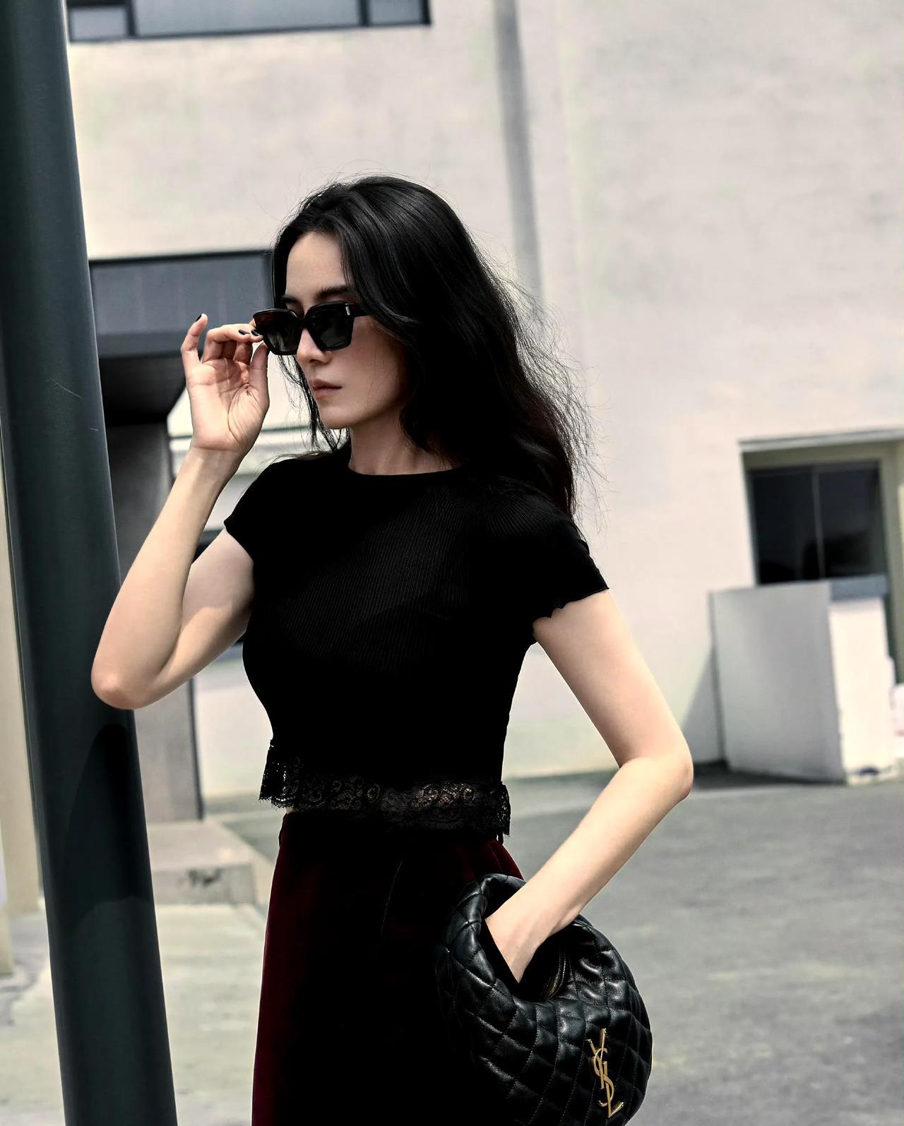 #宋佳#当黑色蕾丝轻缠丝绒的柔韵,墨镜滤过的光影里,每一步都在诠释:优雅与飒气,本就该共生于一身。宋佳#