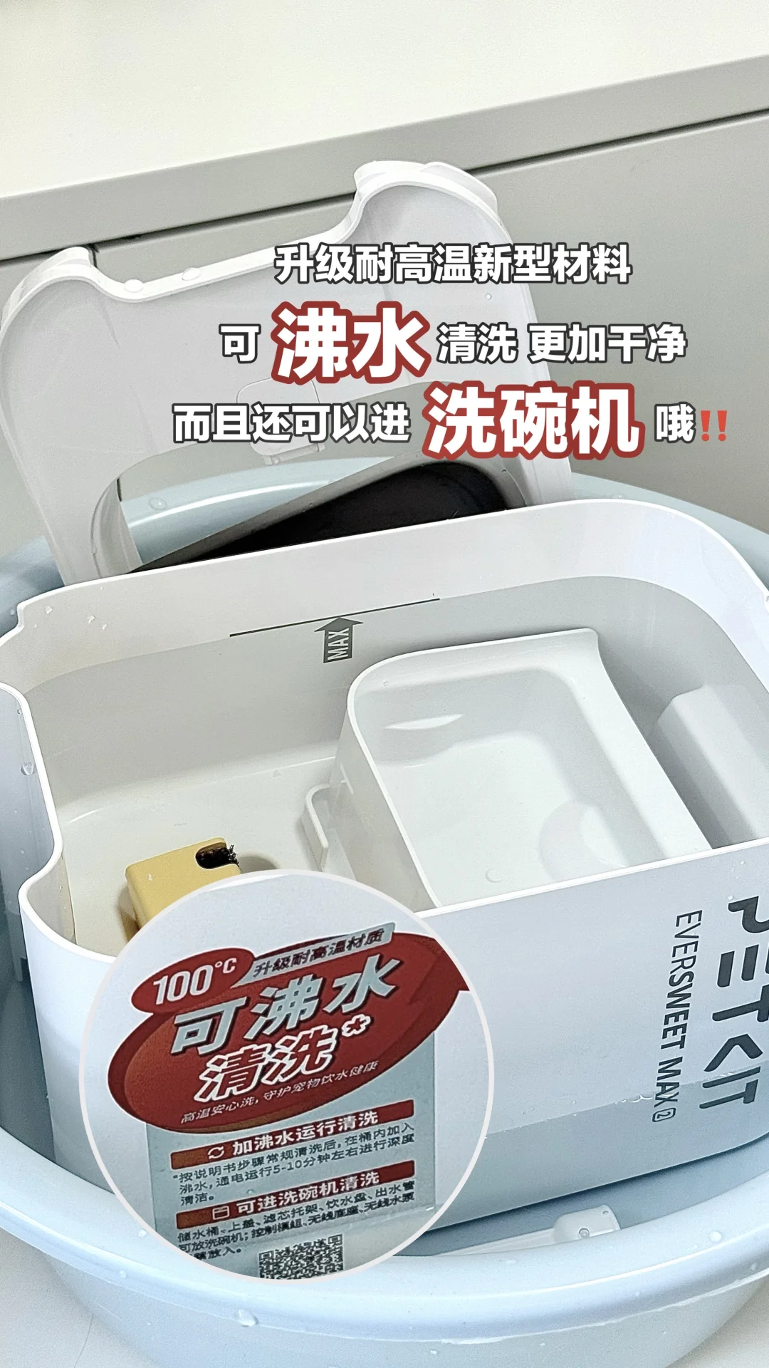 小佩这款饮水机升级为耐高温新型材料 可以沸水清洗高温杀菌 而且还可以放洗碗机里洗!很适合我这种懒人铲屎官