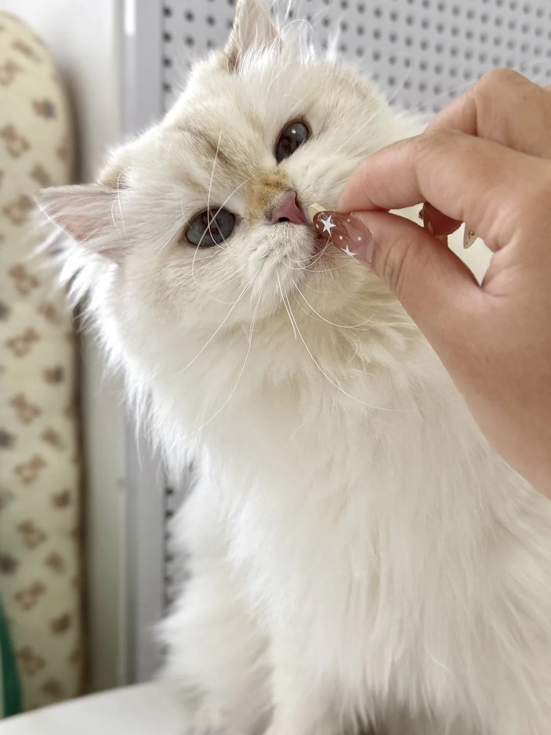 独立包装 一盒有六片 小颗粒猫咪接受程度很高 直接空口吃完去没问题 比较敏感的小猫可以伴着猫条或湿粮一起吃
