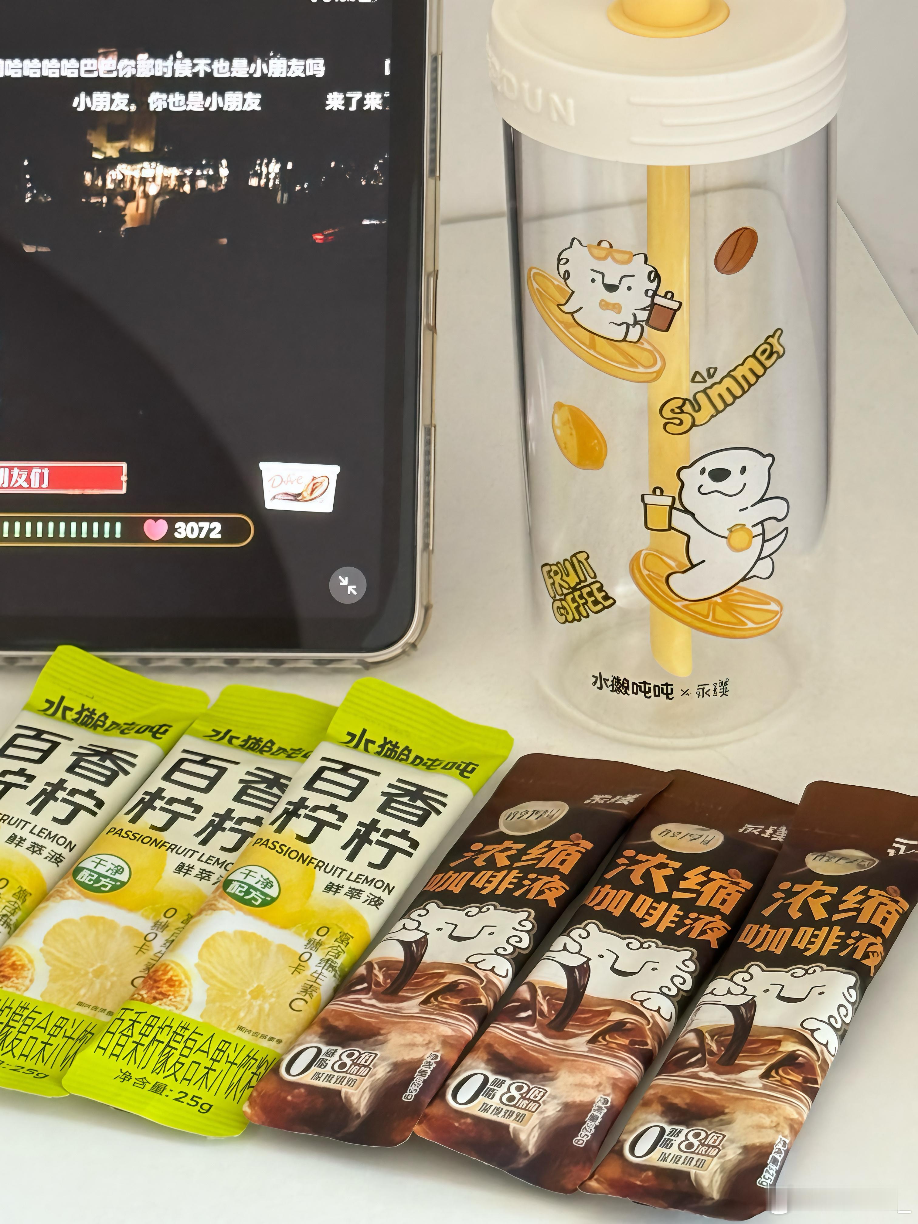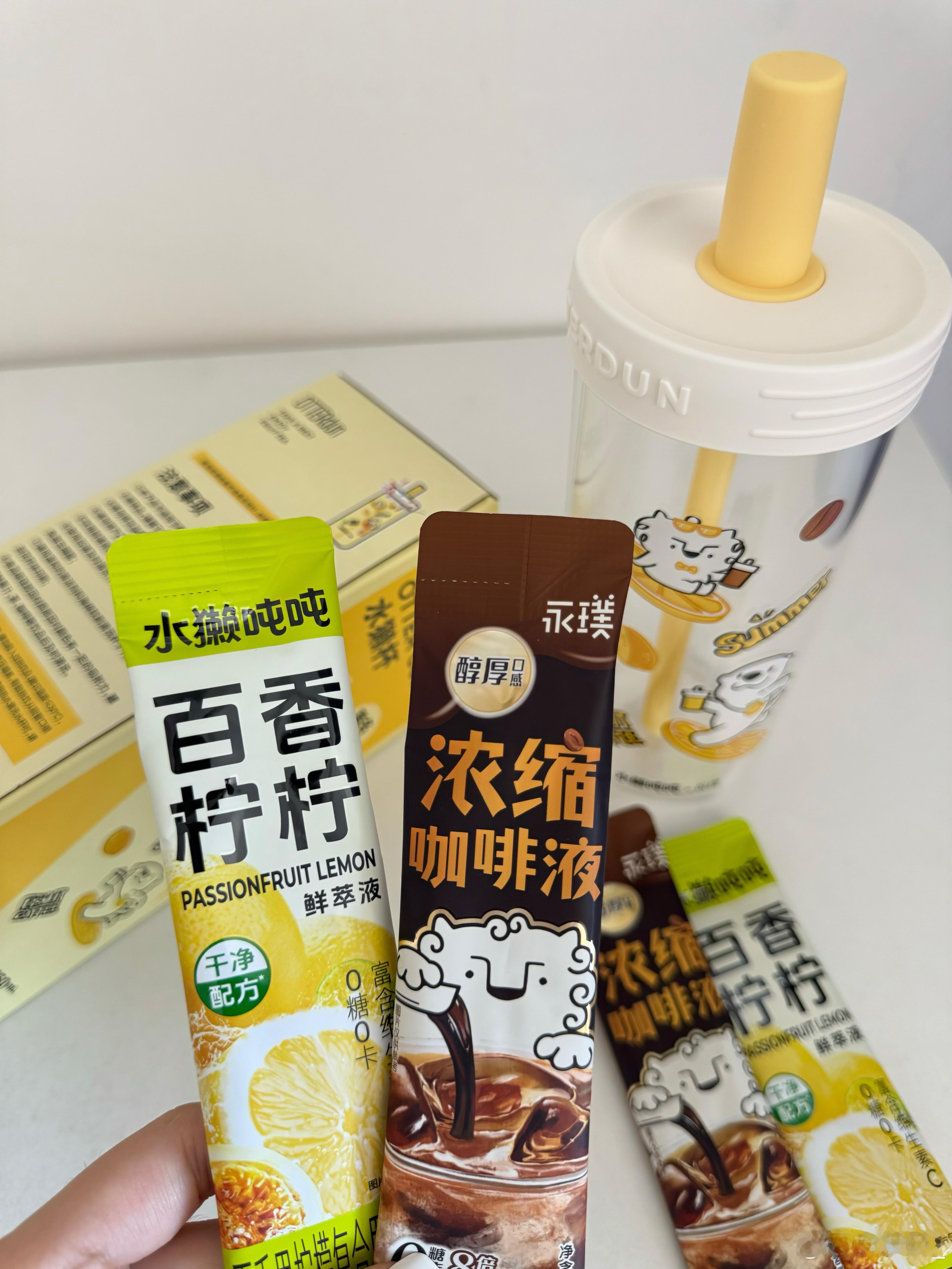 水獭吨吨百香柠柠鲜萃液➕永璞咖啡液🟰轻松实现0糖0脂的“柠C美式”果咖🧊
