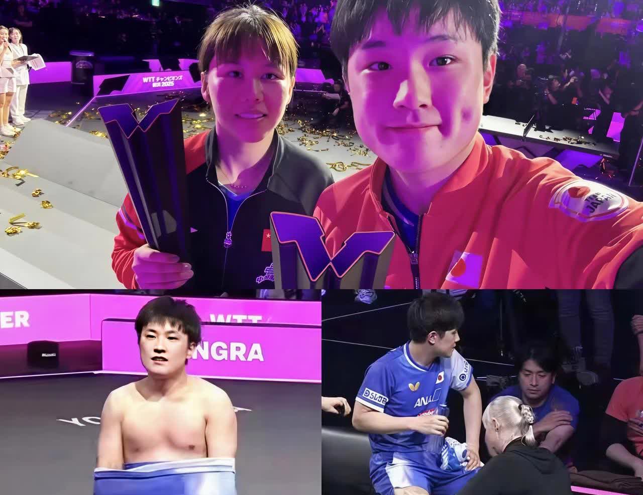 王楚钦真无语了! 不是因为输给张本智和, 也不是因为辜负了粉丝期待,而是因为张本智和好不容易赢了一回,架势就跟赢了800回一样! 你看看他,今天笑的格外灿烂,酒窝都能夹死一只苍蝇!衣服也不套头了,直接脱了举头上了。好像要给全世界说:我终于赢了那家伙!我是焦点,快来给我庆祝吧!! 而且,我们王楚钦刚有手感,张本就医疗暂停,说膝盖疼,可又按摩起大腿了,怒了怒了。我只想说,来日方长!