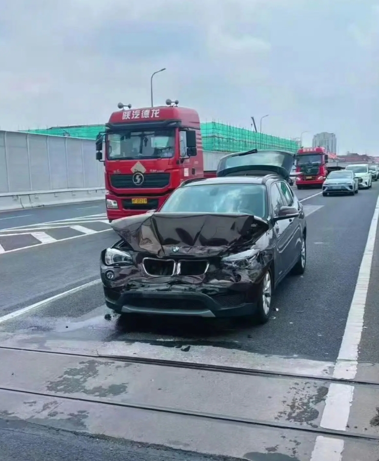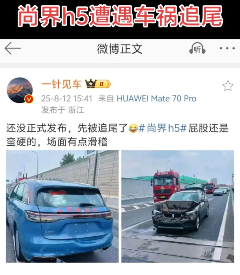 后面的宝马被撞成那样了,尚界h5的屁股没有大的变形,看来用料还是很扎实的