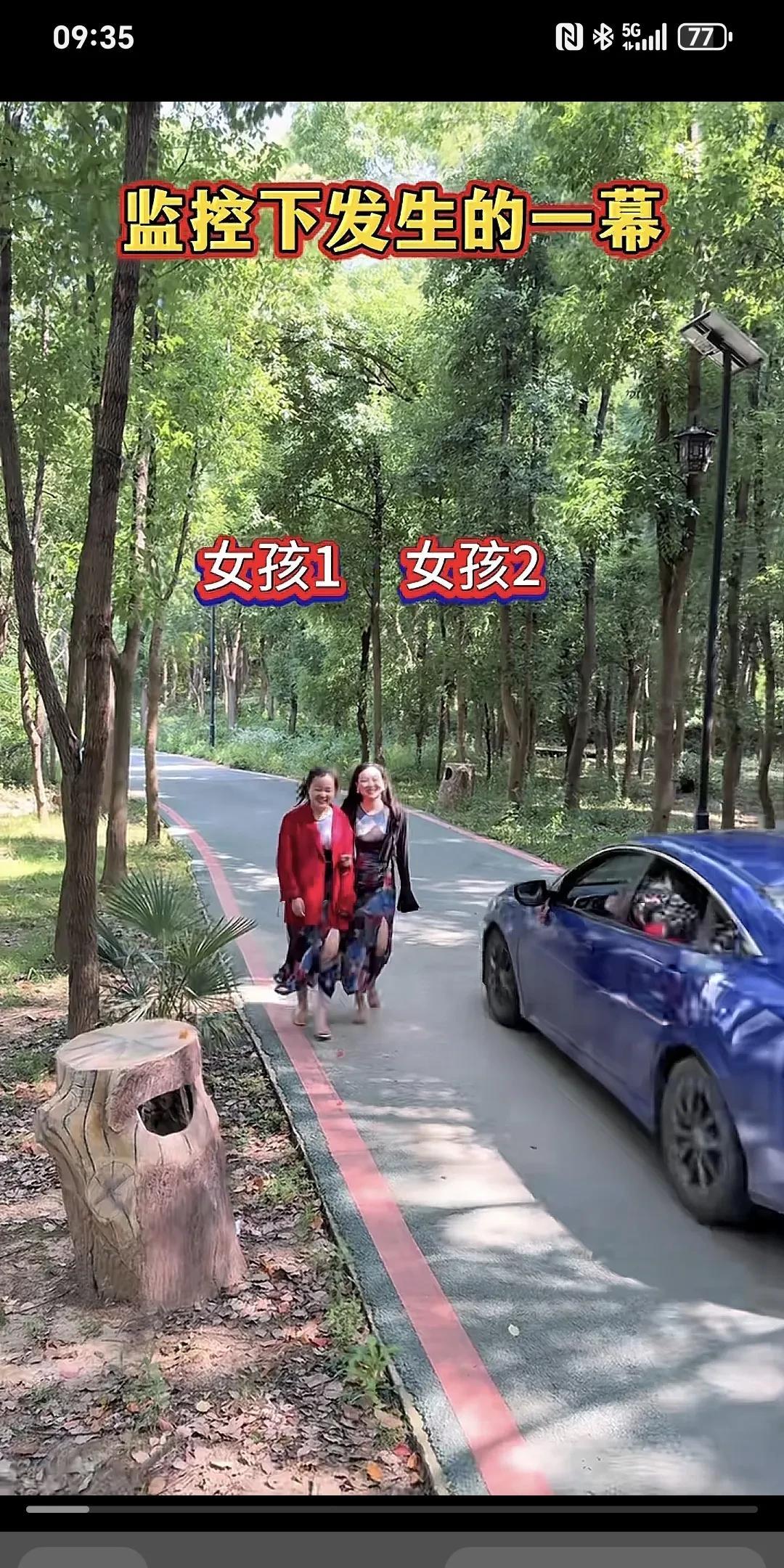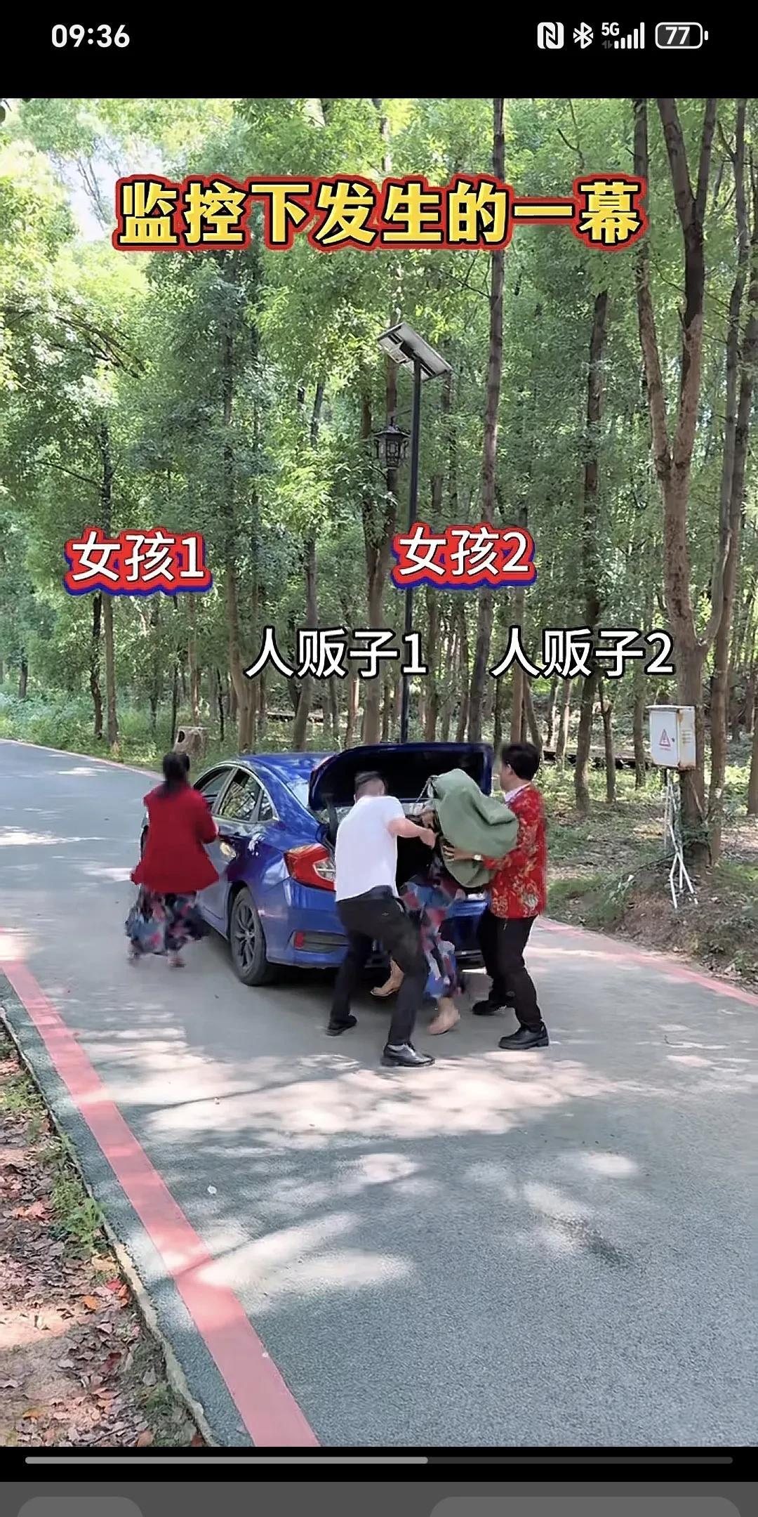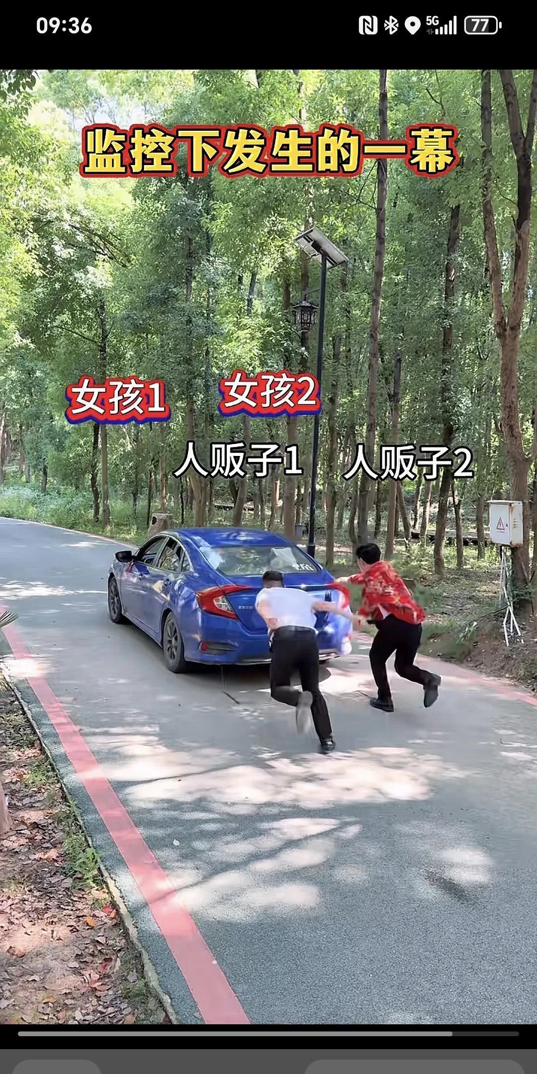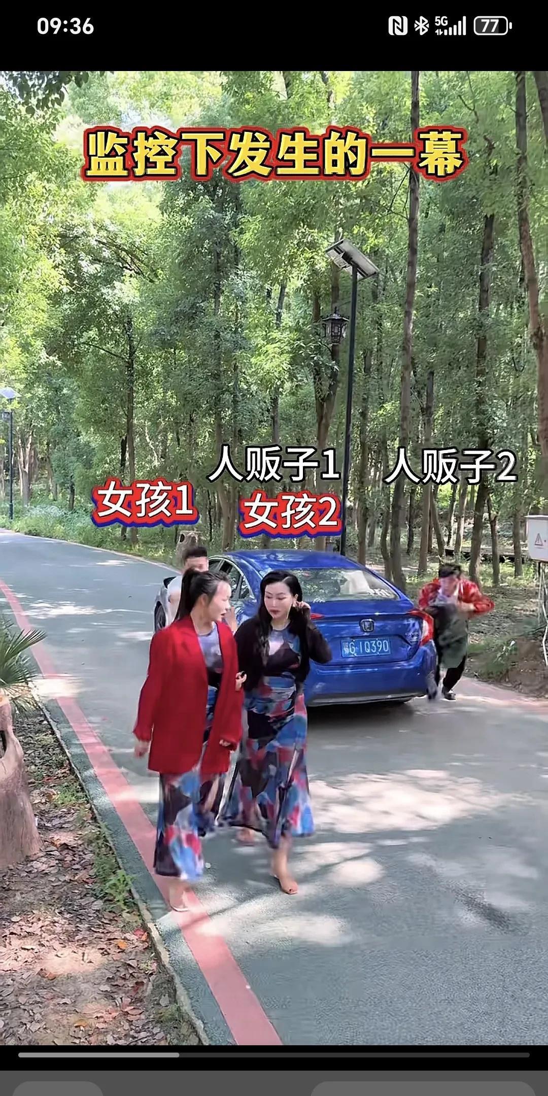 监控下发生的一幕~ 两女子正在赶路,迎面来了一辆车停下下来两名男子“站住,别动。”一名女子在惊慌之中被两个人贩子用袋子套到头上强行装在了后备箱,另一名穿红衣服女子瞬间跑进人贩子车的驾驶室,驾车一溜烟跑了,人贩子在后面望尘莫及。 穿红衣女子会开车,有心计,脑子聪明反应极快,让人贩子防不胜防,白捡了一台车,让人贩子人车两空。