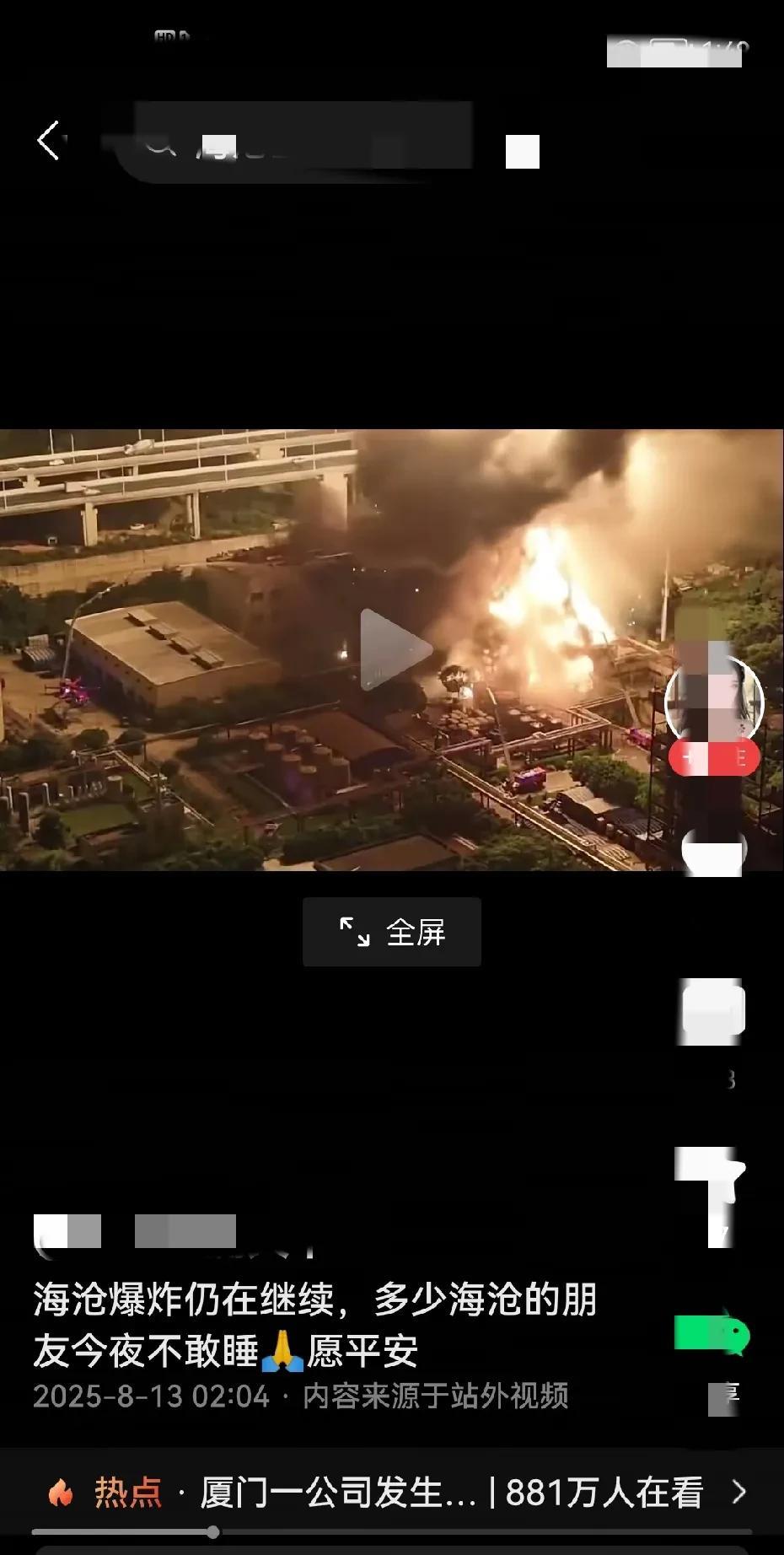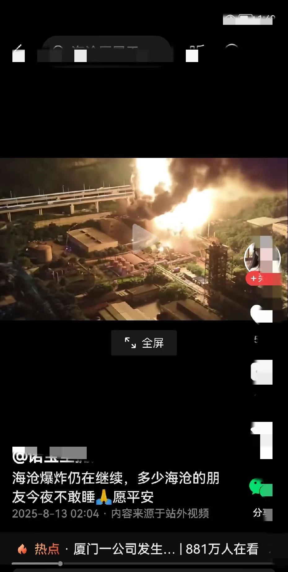 爆炸持续火光冲天 厦门海沧的爆炸事件,真的很让人揪心。金达威公司的闪爆,已