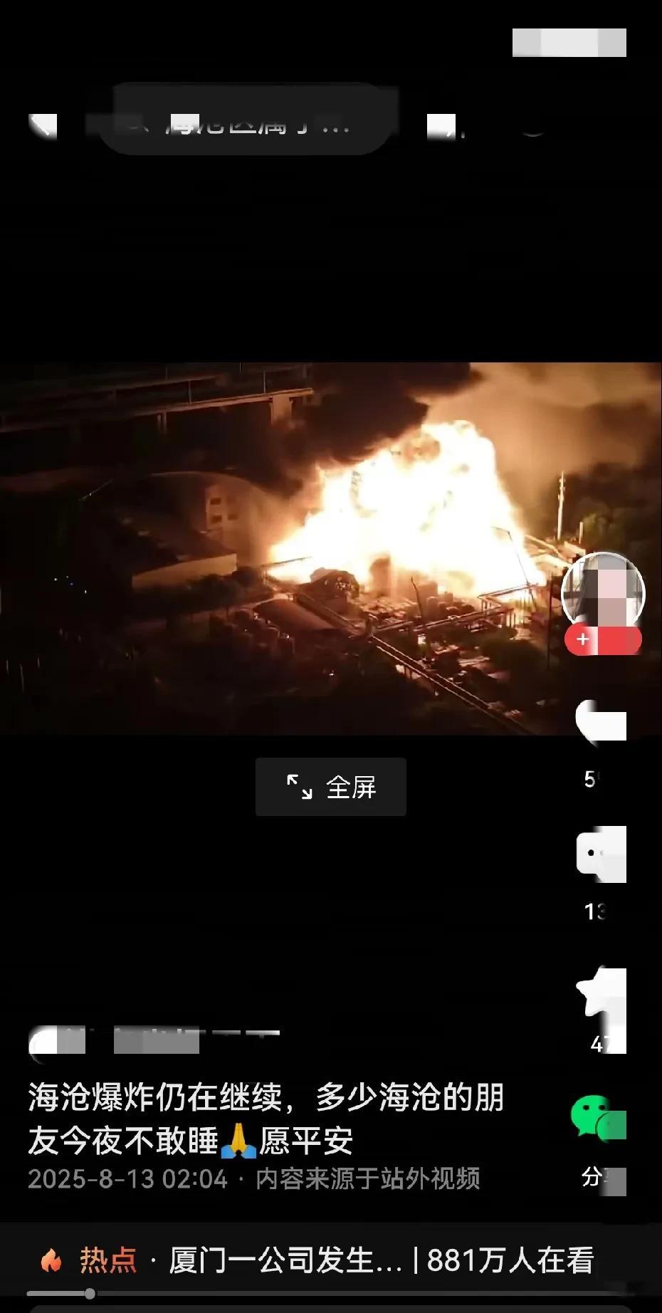 爆炸持续 火光冲天 厦门海沧的爆炸事件,真的很让人揪心。金达威公司的闪爆,已造成3死3伤的恶果,这背后是一个个家庭的破碎。企业之前有13次环保处罚,还能正常运营,这就很让人疑惑。爆炸之后说无人伤亡且无有毒气体,但周边老百姓不认可,却有不同说法,这就暴露出监管,和信息透明方面的问题。企业到底是食品企业,还是化工企业,监管标准是否明确?老百姓的感受和官方通报有出入,到底该相信谁?希望调查能深入,给大众一个清楚的交代,也希望企业能真正重视安全和环保,别再让这样的悲剧发生。