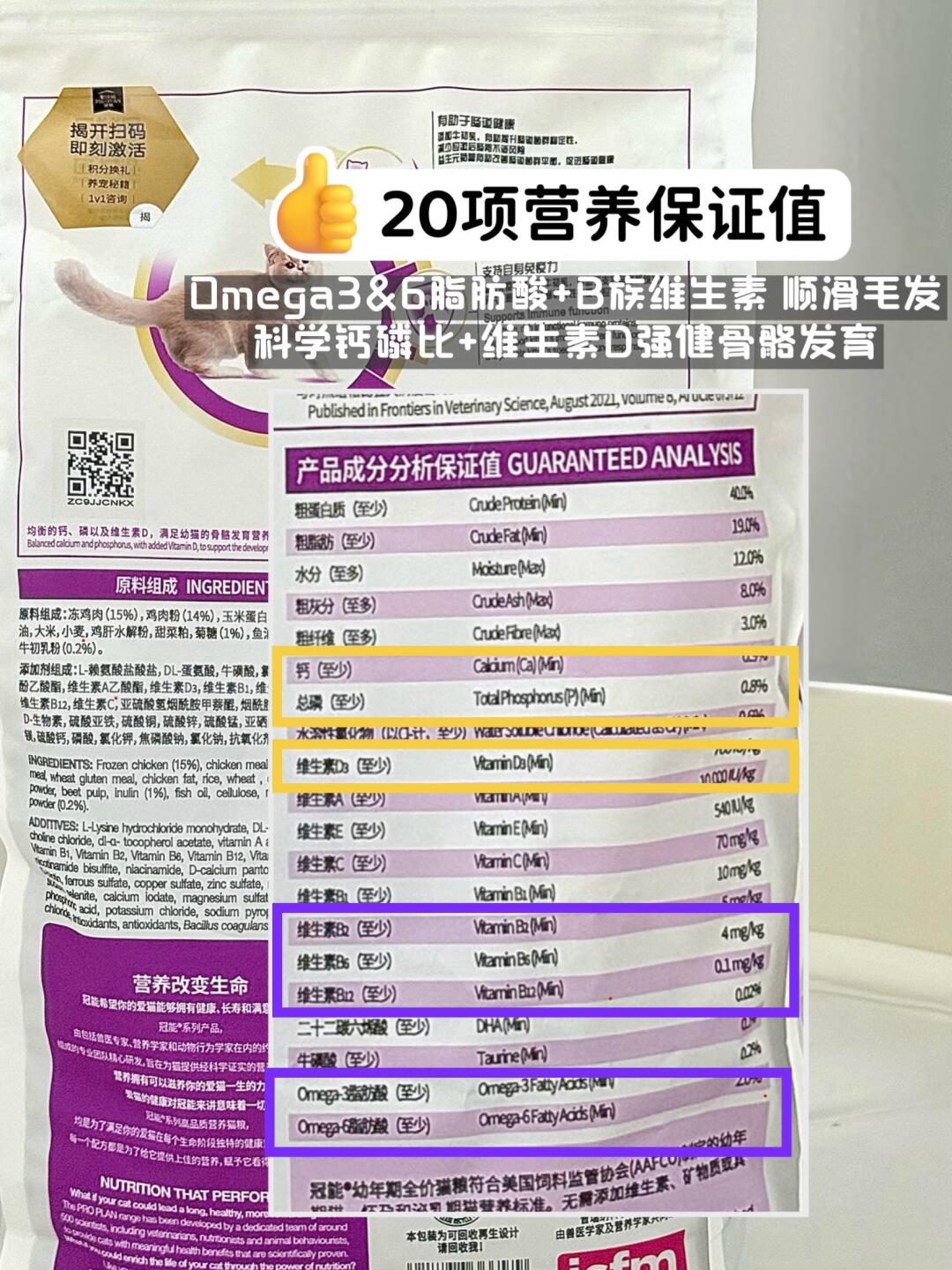 而且这款粮足足有20项营养保证值,远超AAFCO标准,有丰富的Omega3&6脂肪酸和B族维生素可以顺滑毛发;还有科学钙磷比加维生素D强健骨骼发育。我家小猫5个月大的时候已经长到了6kg,相比同龄小猫高大结实不少,尴尬期毛发也很蓬松,不会很秃