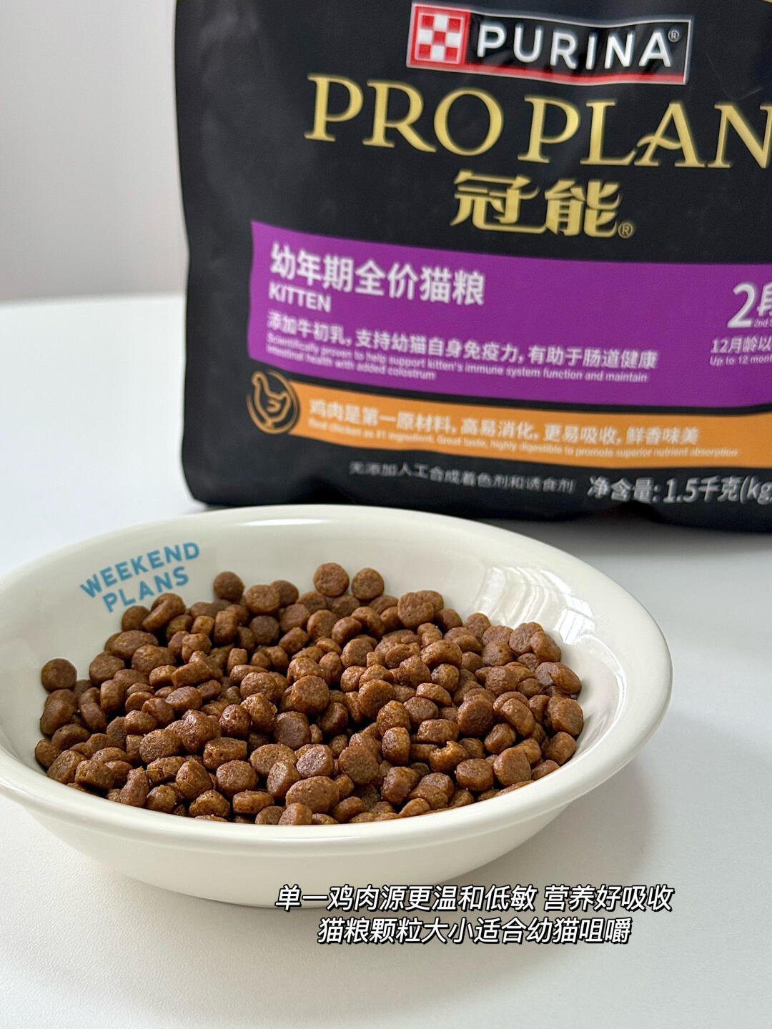 而且冠能背靠大牌雀巢普瑞纳,自有工厂和自有生产线,品控稳定有保障。单一鸡肉源更温和低敏,营养好吸收,猫粮颗粒大小适合幼猫咀嚼,肉香味很浓郁,每次一开袋小猫就凑过来要吃,适口性真的很不错!