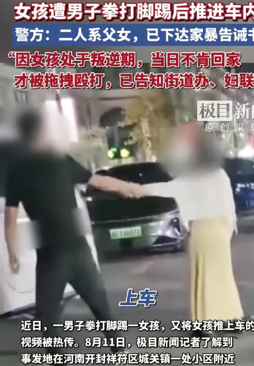 “打在孩子身,疼在父亲心!”在河南开封,一名男子当街痛打一名女子,之后又将这名女子推上自己的车里,背后的原因令人心疼! 事情的起因是,这俩人是父女关系,这名父亲想要让女孩回家,但是呢,女儿偏不愿意回家,就是想在外面玩。 而且,这名女儿正处在叛逆期,老父亲说了好多话,就是听不下去,她不仅不回家,而且连学校都不去了,一天天就在外面跟别人混。 有很多网友评论道: 每个女孩子都让老父亲又气又伤心,因为怕女儿吃亏, 怕女儿被渣男骗 ,担心女儿误入歧途,打的是女儿的身,但是 最难过的还是老父亲,养女儿的都能感同身受。 还有不少网友说:男人是最懂男人的,当父亲的怎么能不知道哪些街上的混子心里想的什么,怎么能容忍这样的事情发生呢! 我想这名父亲在暴打女儿的时候,他的心可能在滴血,他在想为什么我的女儿会成这样,是不是自己哪里做的不够,是不是自己没有好好陪伴女儿。 其实哪有父亲愿意对孩子动手?不过是怕她在外面受一点委屈,怕她在人生的岔路口走偏一步。那巴掌落下去,疼在女儿身上,碎的是父亲的心。 等女儿再长大些可能就会懂,世间所有的严厉,都藏在都是“怕你摔着”的温柔里。这种爱可能就像老树枝桠再粗糙,也会拼尽全力,护着枝头那朵还没开稳的枝丫。