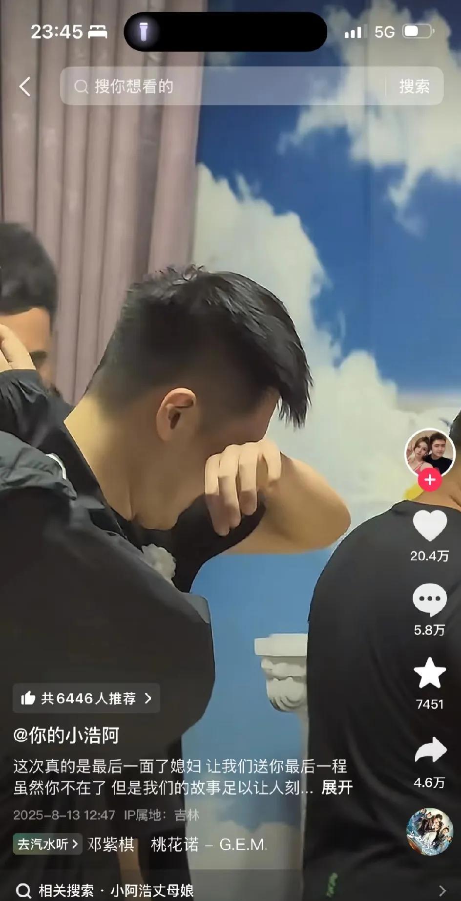 说实话没怎么感觉他特伤心,早上送完媳妇离开,晚上就直播,一般伤心到极致的人都是不