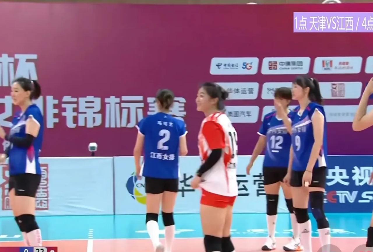 陈友泉率江西女排首迎旧主抢局成功,董铭霄获得上场机会表现并不出彩,江西女排自由人防守很好不输孟子璇! 8月14日,全国女排锦标赛小组赛最后一天的比赛,天津女排对阵江西女排。这也是陈友泉从天津离开执教江西女排后第一次与老东家正面交手。 由于这一场比赛对两队的出线形势没有影响,陈方或许是为了淘汰赛蓄力,孟子璇首发,王艺竹轮休,杨艺登场,卞敏璇搭配夏思佳出任副攻线。 首局比赛,江西女排开局还能咬住比分,后面撑不住了,18-25先丢一局。 第二局,江西女排与天津女排打得十分胶着,场面上并不处于劣势,两队多次打平,替补上场的自由人袁蓉多次防起陈博雅、刘美君的重扣,令人眼前一亮,江西队22-21领先的情况下,没能守住优势,以23-25再输一局。 第三局,江西女排紧咬比分,与天津女排打到18-18,杨艺连续扣球失误,江西女排21-19领先,陈方用董铭霄换下杨艺,董铭霄哐哐两个扣球得分帮助队伍将比分追平,21-21,江西队快球得分,刘立雯一传不到位,董铭霄两次扣球出了边线,江西队拿到了赛点,董铭霄被杨艺换下,江西队拦网得分,25-23,江西队拿下一局。 第四局,江西队与天津队还是打得有来有往,孟豆被张馨月换下,刘鑫获得上场机会,陈博雅也能休息会了,两队又是分差不大,江西队20-21后连丢两分,此后又将比分追到22-23,陈方叫暂停。江西队乱球失误,天津队靠着拦网以25-22拿下第四局。 这场比赛,不知是陈方留面还是天津队发挥不佳,江西队输得并不难看。