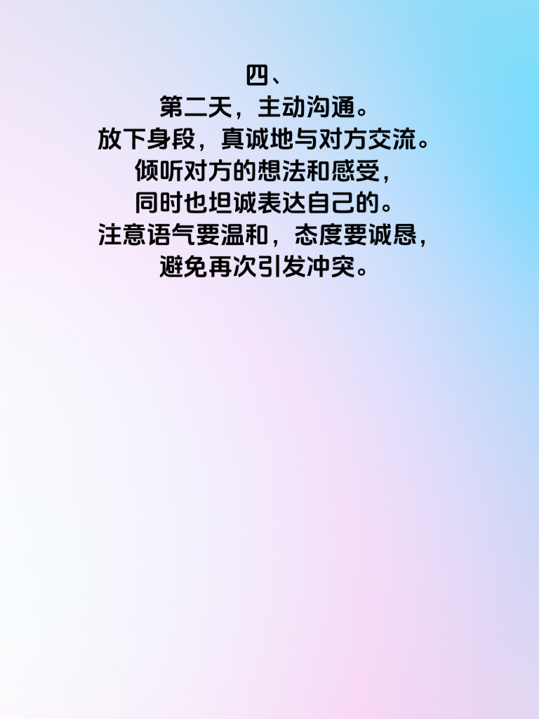 一、情绪冷战,婚姻危险信号,3天自救指南 二、婚姻中出现情绪冷战,就像平静湖面下的暗礁,看似无声,实则暗藏危机。它往往是双方矛盾积累的结果,若不及时化解,可能会让婚姻走向危险边缘。 三、第一天,冷静反思。先让自己从冷战的情绪中抽离出来,思考冷战的根源。是沟通方式不对,还是近期压力太大?只有找到问题所在,才能对症下药。 四、第二天,主动沟通。放下身段,真诚地与对方交流。倾听对方的想法和感受,同时也坦诚表达自己的。注意语气要温和,态度要诚恳,避免再次引发冲突。 五、第三天,修复关系。可以一起做些喜欢的事,比如看电影、散步等,在轻松愉快的氛围中增进感情。给对方一个小惊喜,让生活重新充满温暖。 六、记住,婚姻需要双方共同努力经营。通过这3天的自救,打破冷战的僵局,让婚姻重回幸福轨道。