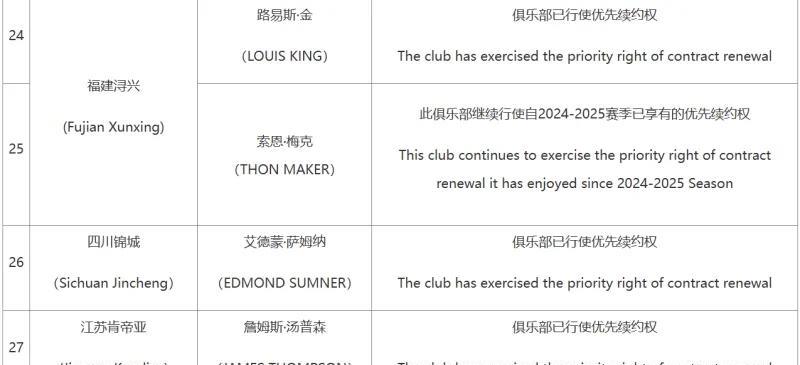 外援优先权正式揭晓,广东四外援一个不留可追深圳江苏弃将。CBA官网公布了2025