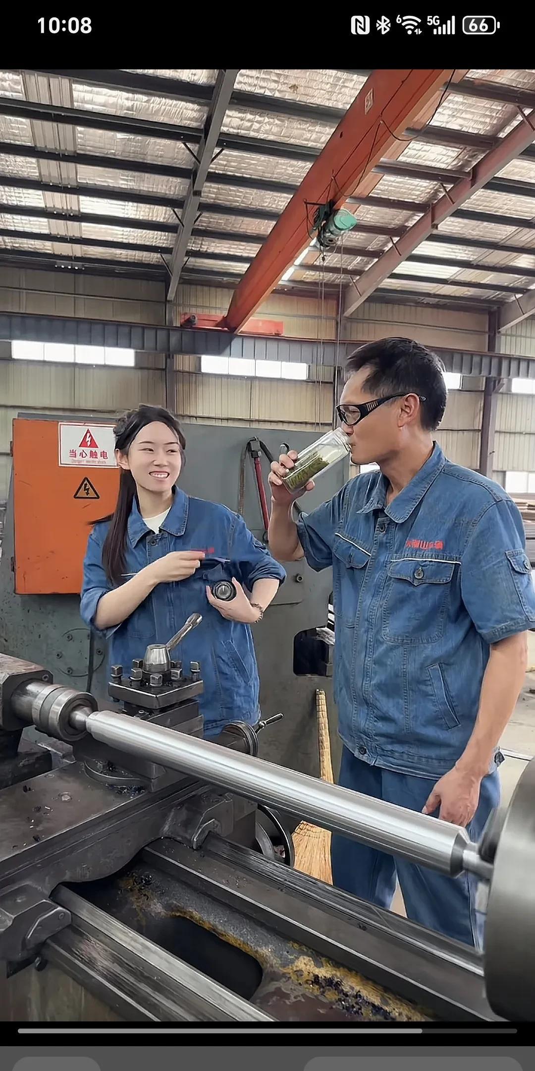 今天车间40度高温,给师傅泡一杯毛尖茶,解解暑歇会儿~ 餐巾纸你给大家来个措手不及,以为又要掏烟呢。 带你这样的学徒老爽歪歪了,有茶又有烟,又有几片西瓜吃,吃饭有时再来瓶啤酒品品,哪个师傅都愿意带,小丫头人情世故都做到了! 长发飘飘好看,但是旁边有旋转机械设备,工作期间这是很危险的,还是要戴安全防护没备,对自己是一种保护。