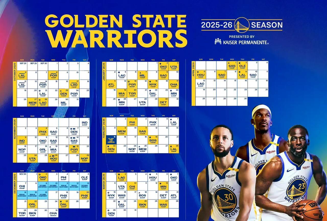 勇士队完整赛程: 34场全美直播! 15组背靠背! 赛季末最后十场有7个主场!