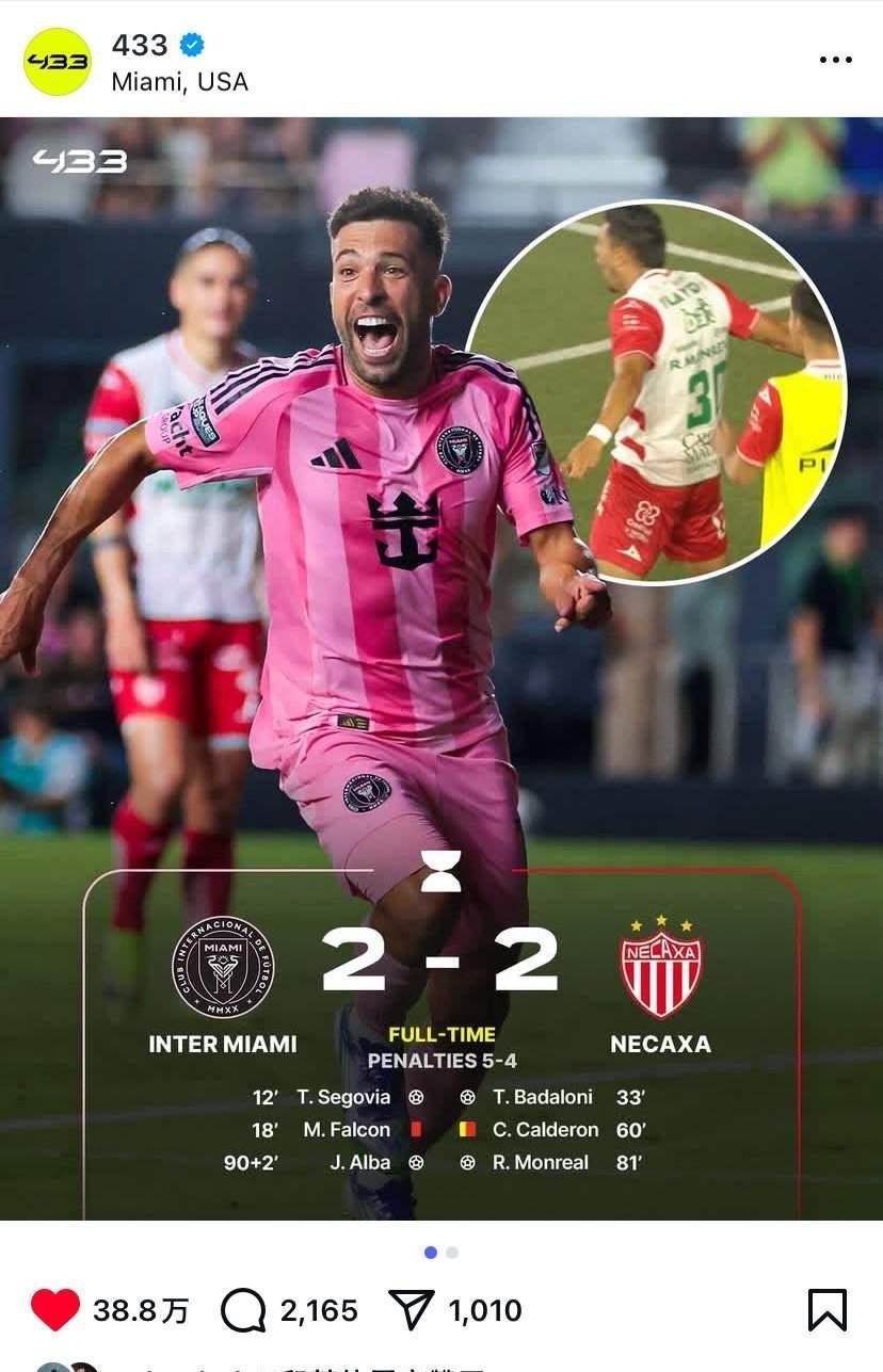 登贝莱有多么推崇梅西、看轻C罗? 《433》报道了迈阿密国际的对手球员在进球后做