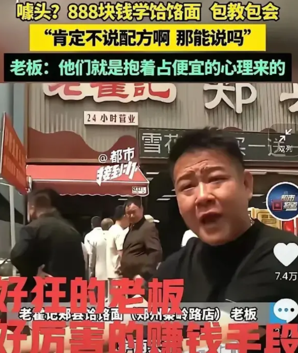 这还没完,这家店后来又上新闻了,老板吹嘘888教饸饹面,结果2个年轻人来学习,成了免费员工,说好的教做面,其实就是下面条,当他们提出饸饹面做法时,被老板怼占便宜,还说要再交3000才能说配方。