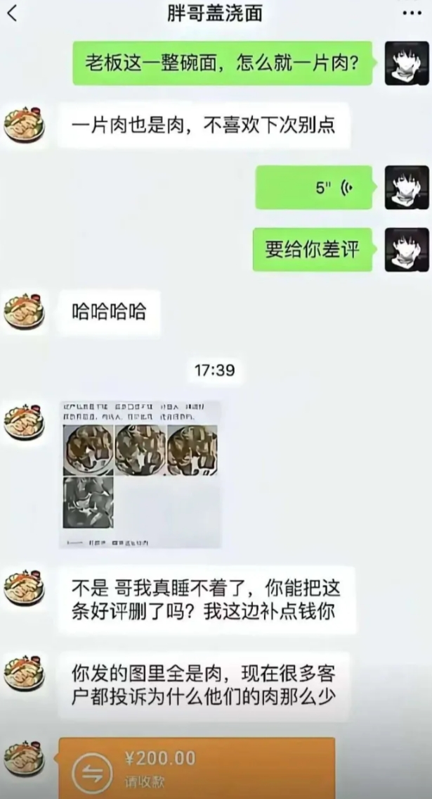 这老板都不会解释,人家那碗是加肉的面,付了加肉的钱。