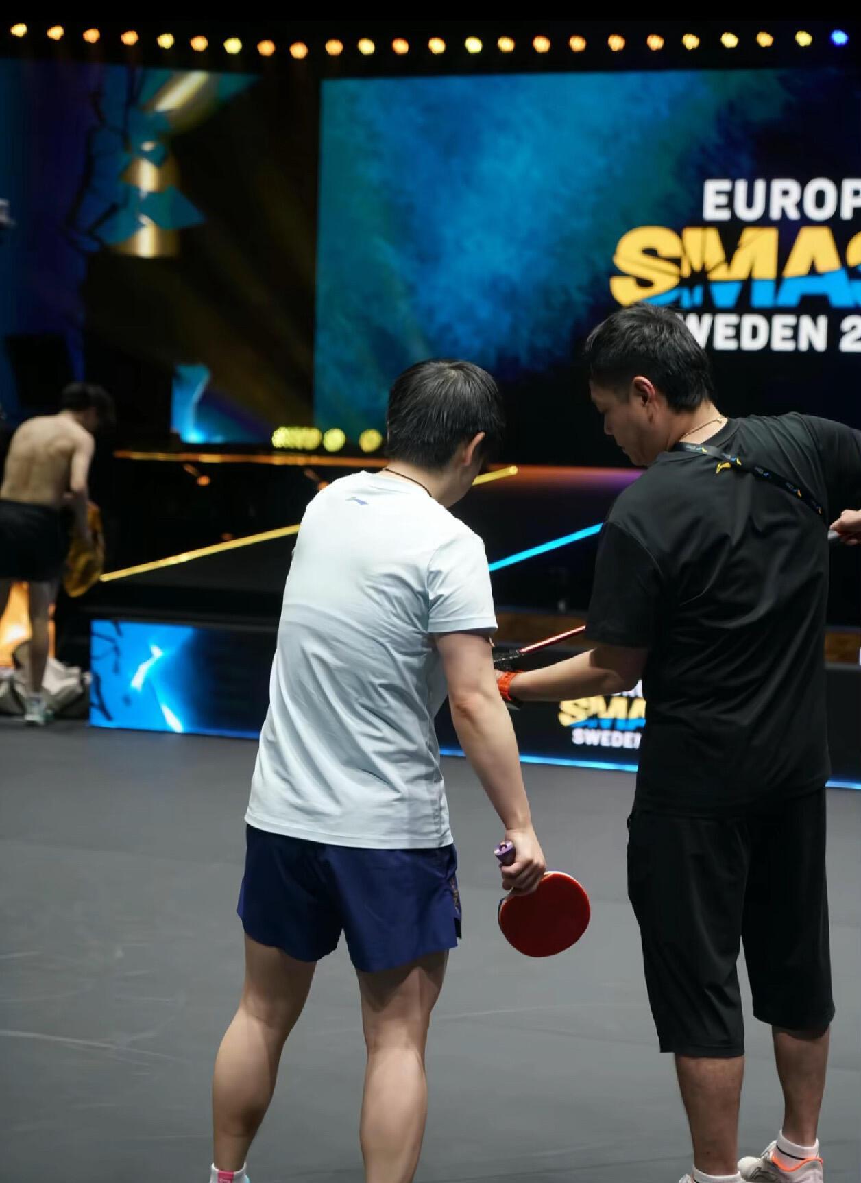 莎莎让coco快去捡球,本该邱指导让莎莎去捡球,师徒俩又有料来笑嘻嘻! 邱指导在赛场,陪着训练就很安心,超级棒的莎莎,真的是看到自己的师傅就有底气和心思打球,瑞典大满贯邱贻可一直在,这次比赛可是会赢了! 最好的教练和运动员组合,师徒俩让人很安心和暖心!