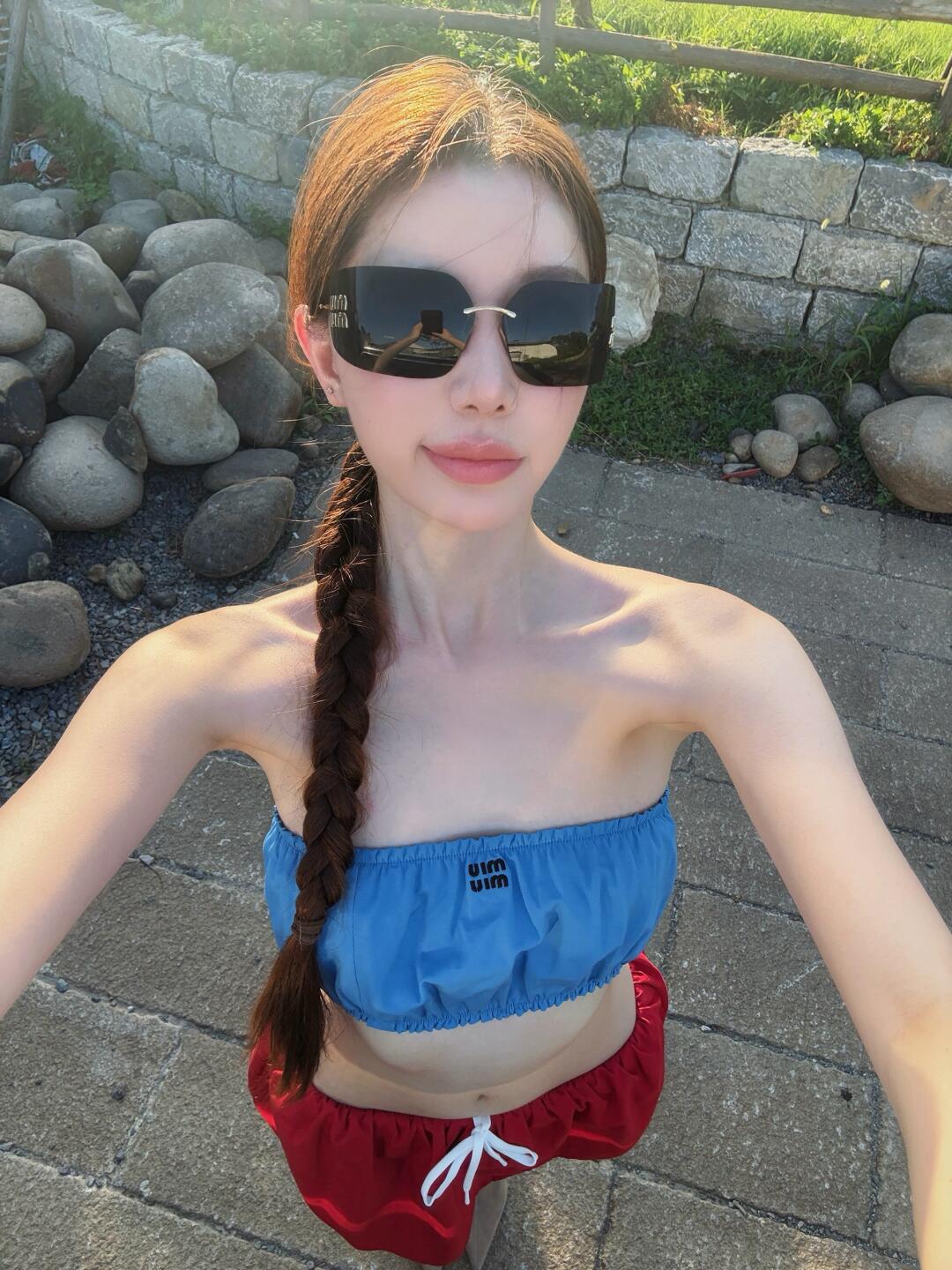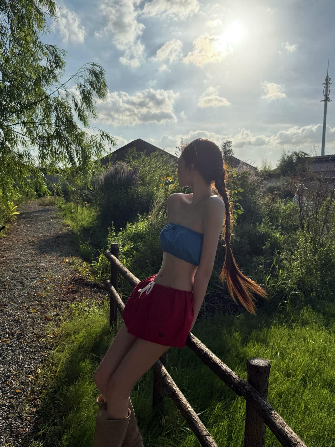 少女心满满的一天,粉色T恤与湖畔美景的完美搭配!💕🌸🌿