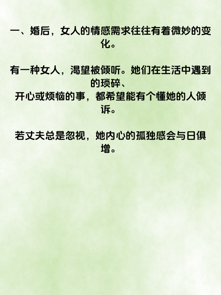 一、婚后,女人的情感需求往往有着微妙的变化。有一种女人,渴望被倾听。她们在生活中遇到的琐碎、开心或烦恼的事,都希望能有个懂她的人倾诉。若丈夫总是忽视,她内心的孤独感会与日俱增。 二、还有渴望浪漫的女人。婚姻生活的柴米油盐容易磨灭激情,偶尔的一束鲜花、一顿精心准备的晚餐,就能让她们感受到爱。忽视这份需求,她们会觉得生活平淡如水。 三、另外,需要尊重的女人也不容忽视。她们有自己的想法、追求和梦想,当丈夫不尊重其决定,总是擅自做主,她们会觉得自己不被重视。 四、男人要明白,忽视这些女人,她们的出轨率可能飙升。因为在别的男人那里,她们可能会得到自己渴望的倾听、浪漫与尊重。所以,婚后多关注妻子的这些情感需求,用心经营婚姻,才能让爱长久。