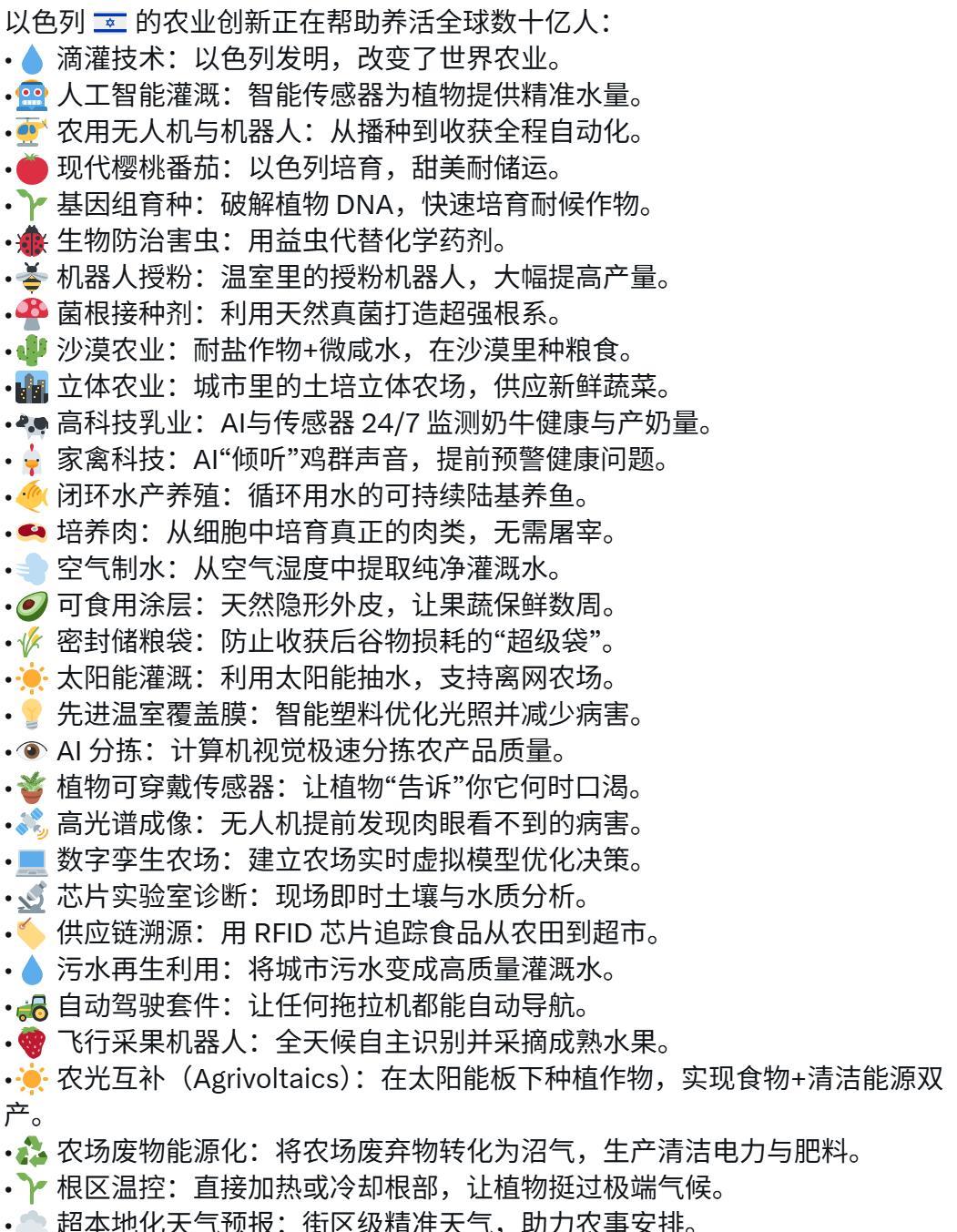 以色列的农业创新正在帮助养活全球数十亿人,哈粉们出来走两步,你们对世界贡献了什么?