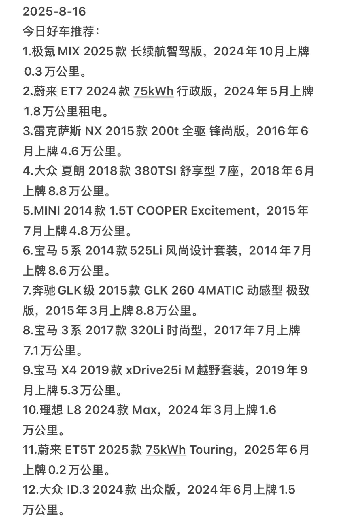 8月16日精品自营车推荐。车辆信息在作品最后一页噢,感兴趣的老板随时私信我,目前总共还有300多台车型在售哦~
