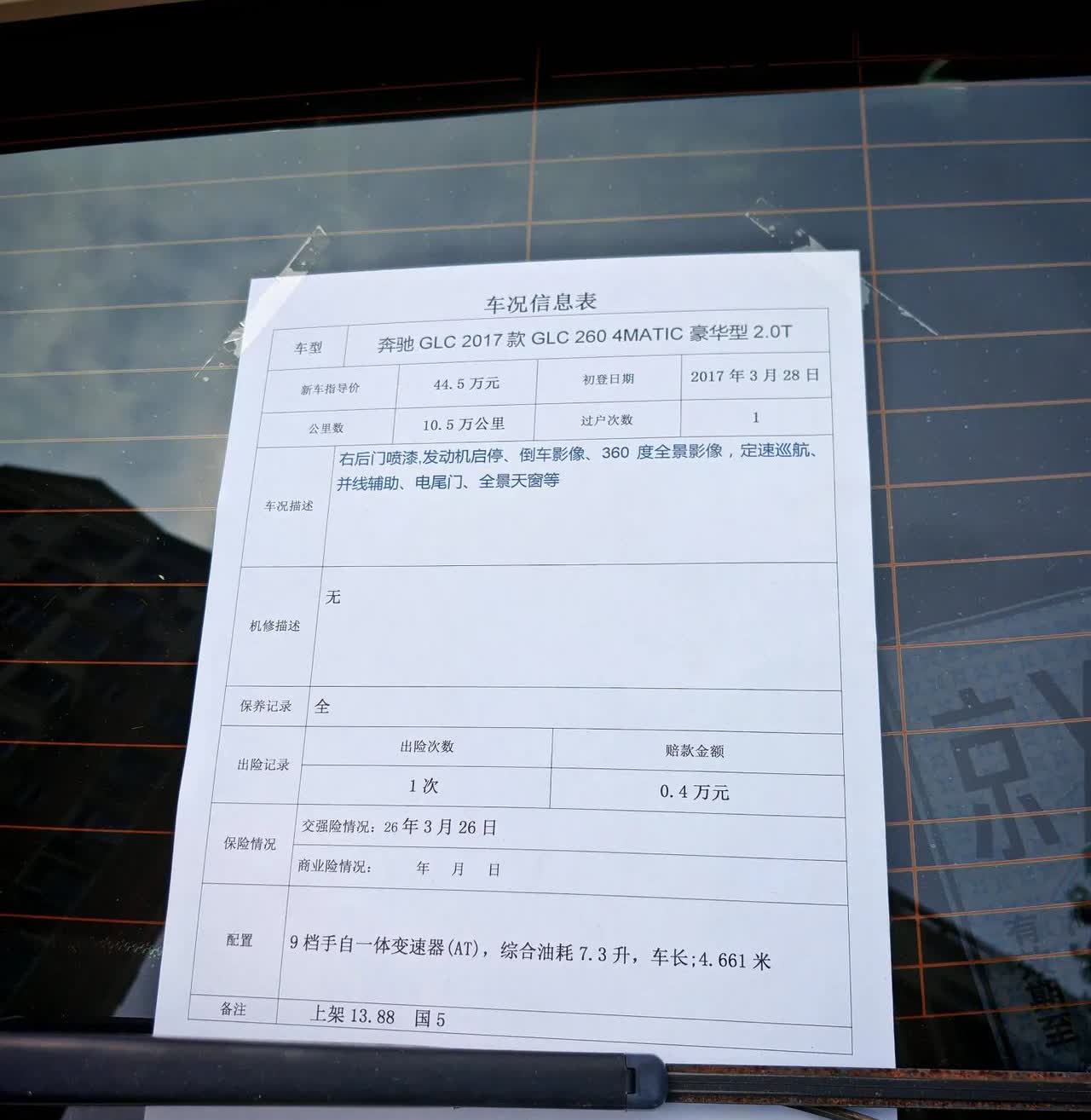 2017年花40多万买奔驰GLC,现在只能卖10多万,这贬值率真是让人惊掉下巴。 2016年10月上市的2017款奔驰GLC,有5款车型,售价39.6 - 57.9万。就拿GLC 300 4MATIC动感型来说,新车指导价48.8万。外观和上一款差不多,部分车型加了AMG车身风格组件;配置新增Mercedes me互联系统,还有各种选装包。动力全系搭载M274发动机,匹配9挡自动变速箱,有4MATIC四驱系统。一辆2017年1月上牌、里程6.8万公里的同款车,二手报价才14.68万。这要是现在买二手,性价比确实高,但当年的车主估计得肉疼。