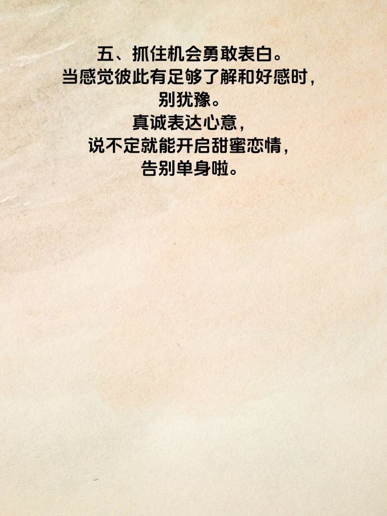 一、2025 年或许会有新的情感趋势,单身汪们想要迅速脱单,得先了解自身优势。盘点下自己的闪光点,无论是幽默风趣、才华横溢还是善良体贴,这都是吸引他人的资本。 二、扩大社交圈是关键一步。走出舒适区,参加各类兴趣活动、社交聚会。在新环境中,更容易遇到合拍的人。比如喜欢运动,就去参加健身课程或户外徒步活动。 三、提升自我形象也不容忽视。保持良好的生活习惯,注重仪表整洁。自信的姿态和微笑能增添魅力。学习一些穿搭技巧,展现独特风格。 四、聊天是建立关系的桥梁。学会倾听,真诚回应对方话题。准备一些有趣的话题,避免尬聊。适当幽默,能让交流更愉快。 五、抓住机会勇敢表白。当感觉彼此有足够了解和好感时,别犹豫。真诚表达心意,说不定就能开启甜蜜恋情,告别单身啦。