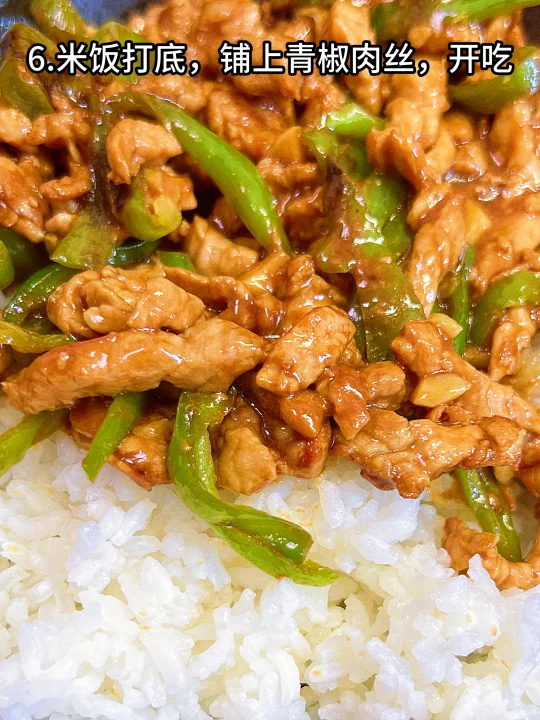 🍳超详细青椒肉丝拌饭做法,照着做准好吃